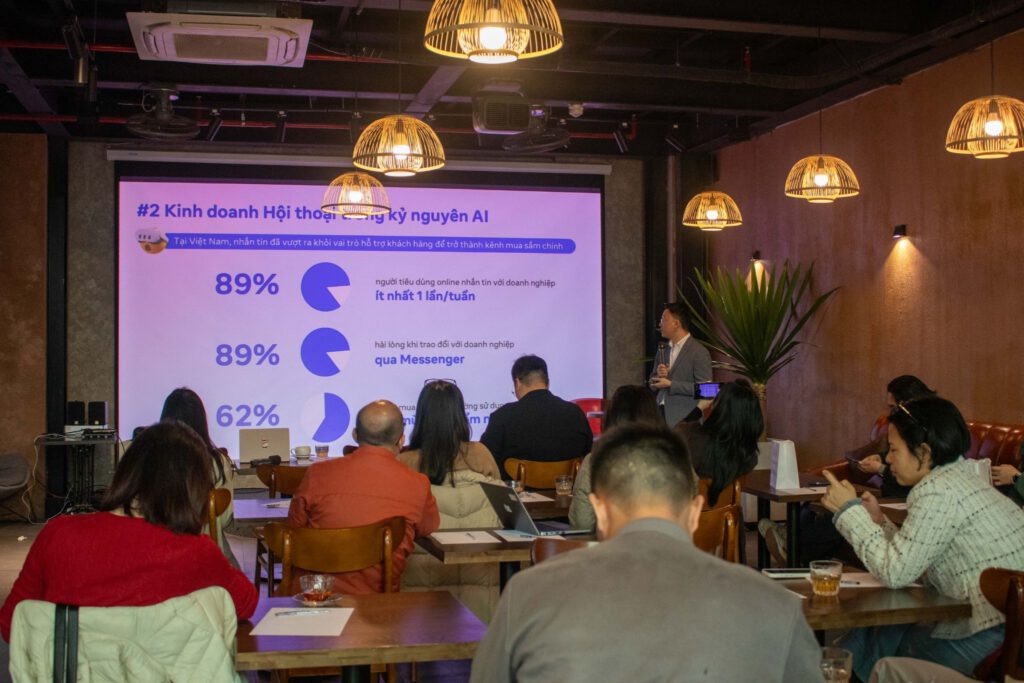 Song song đó, người tiêu dùng Việt Nam đã quen với việc AI tham gia vào hành trình mua sắm và quá trình tương tác với doanh nghiệp. Hơn 85% người dùng cho rằng chatbot AI hữu ích trong thương mại điện tử và chăm sóc sức khỏe, trong khi 59% cho biết phản hồi kịp thời của chatbot AI giúp cải thiện trải nghiệm khi nhắn tin với doanh nghiệp. Điều này cho thấy AI đang dần trở thành một phần không thể thiếu trong Kinh doanh Hội thoại tại Việt Nam.