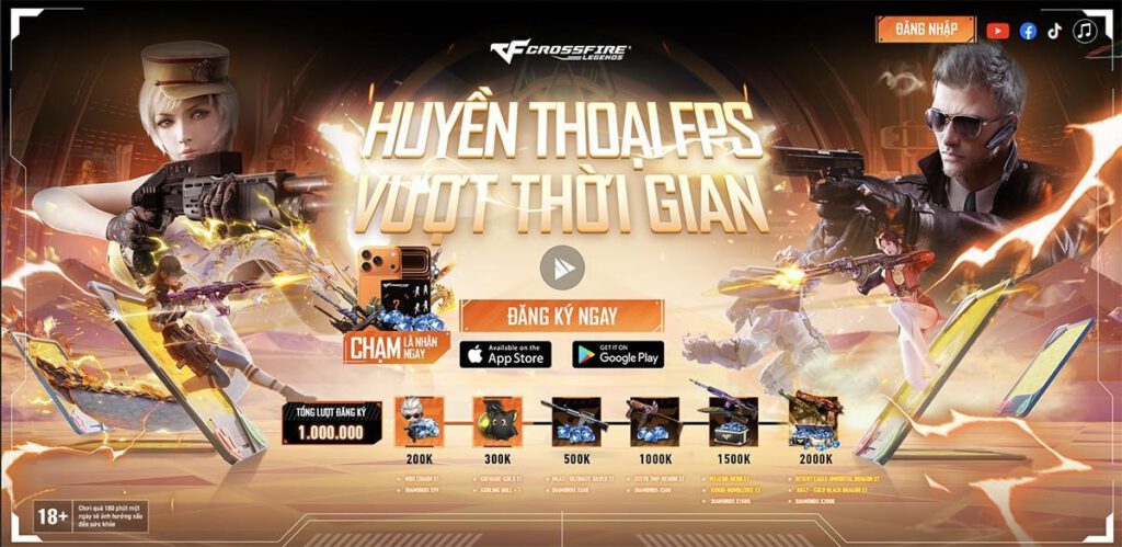 Vào lúc 14 giờ ngày 13/10, CrossFire: Legends đã chính thức thông báo mở giai đoạn đăng ký sớm với loạt sự kiện đầy hấp dẫn dành cho game thủ tham gia. Phần sự kiện chính của đợt này bao gồm Rút Thăm May Mắn và Hoàn Thành Nhiệm Vụ Săn Quà Khủng.