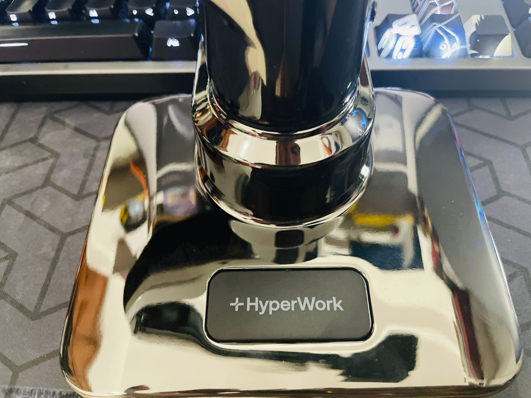 Điều đầu tiên đập vào mắt tôi khi unbox sản phẩm chính là lớp hoàn thiện bề mặt độc đáo. HyperWork đã sử dụng lớp mạ điện chrome đen bóng, tạo nên một vẻ ngoài sang trọng, tinh tế nhưng cũng đầy mạnh mẽ. Khác với những loại sơn tĩnh điện thông thường dễ bị trầy xước, lớp mạ này cho cảm giác cao cấp và chắc chắn, hứa hẹn khả năng chống ăn mòn và trầy xước hiệu quả trong suốt quá trình sử dụng. Đây là một điểm cộng lớn, đặc biệt đối với những người dùng kỹ tính như tôi, muốn giữ cho góc làm việc luôn trong trạng thái hoàn hảo.