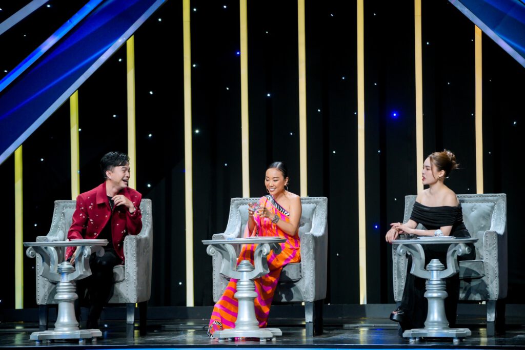 Đặc biệt, cặp sao đôi Trân Oanh và Trần Thủy Tiên còn bất ngờ tiến xuống khu vực ban giám khảo và “hào phóng” tặng mỗi người một chiếc nhẫn hột xoàn cỡ lớn, khiến ban giám khảo không khỏi phấn khích.