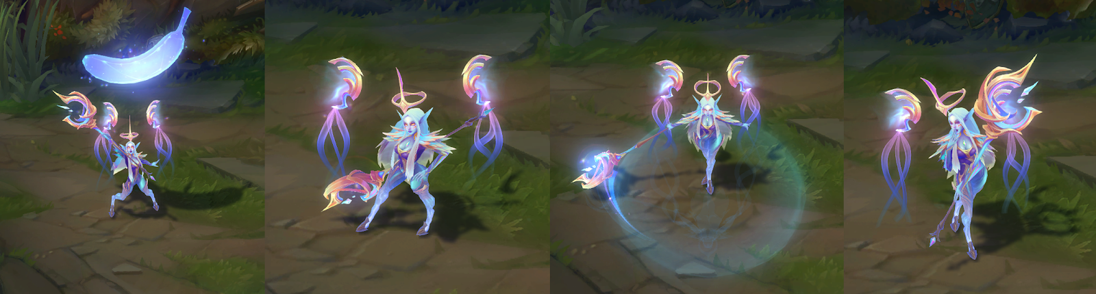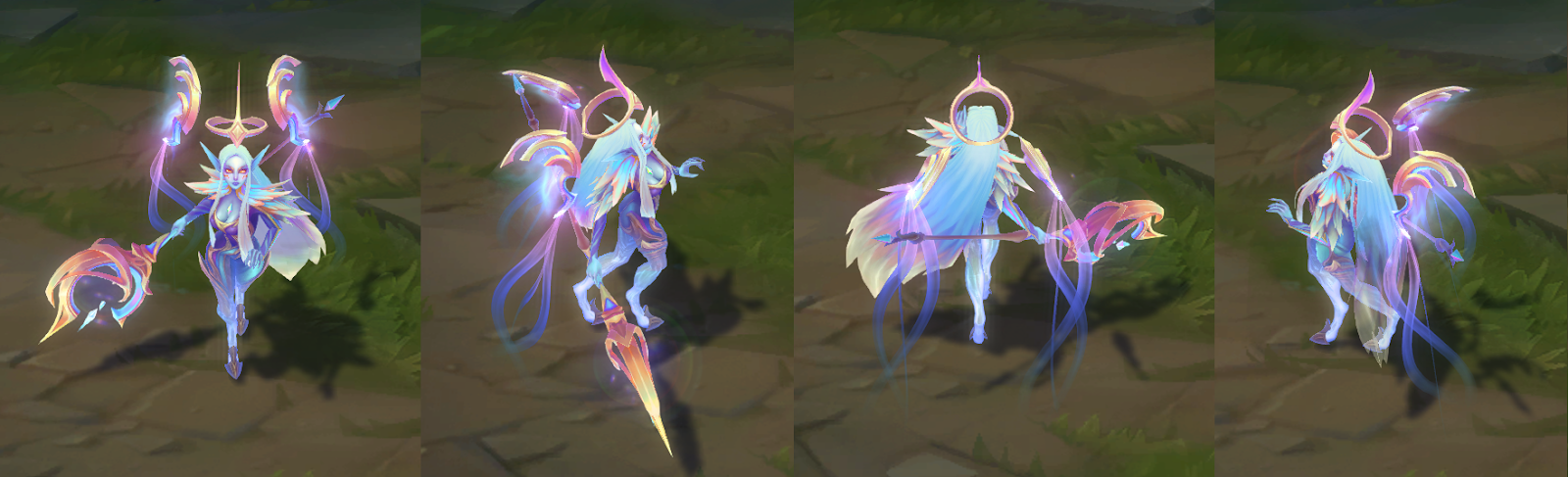 9.24 là phiên bản mà Riot tung ra tới 13 trang phục liền một lúc, và để các bạn khỏi chóng mặt thì chúng ta hãy cùng đi vào chiêm ngưỡng những hình ảnh của từng nhóm trang phục một nhé. Đầu tiên hãy cùng đến với những cô nàng Thần Sứ.