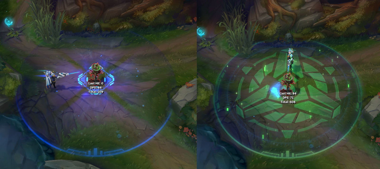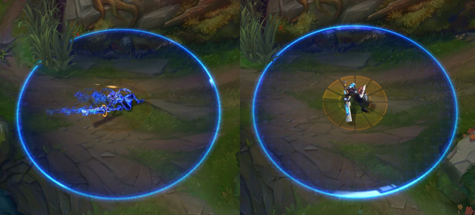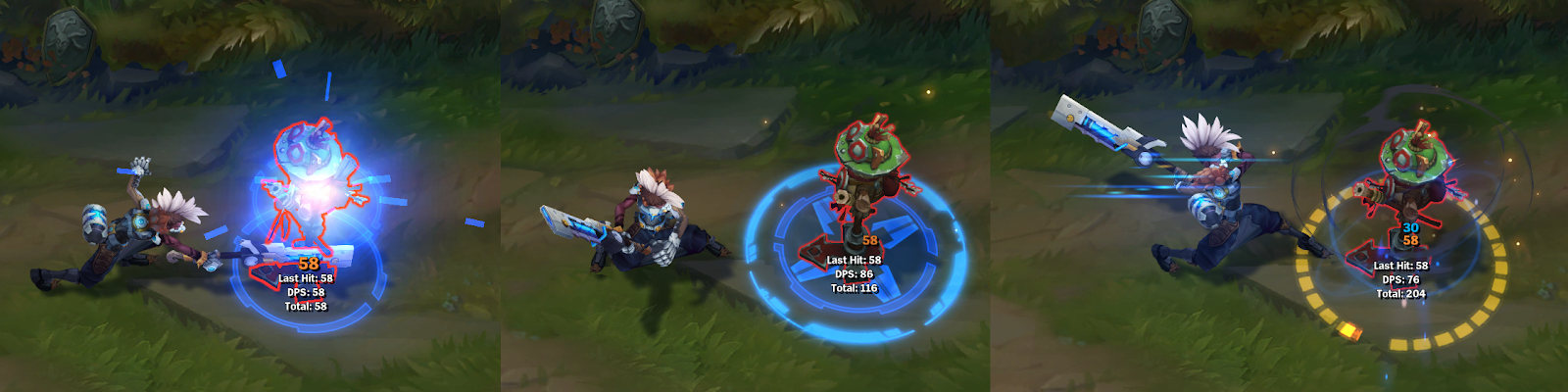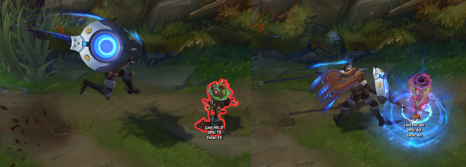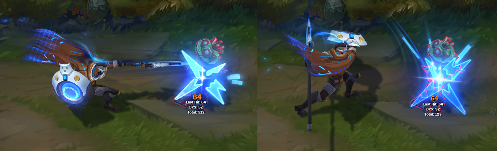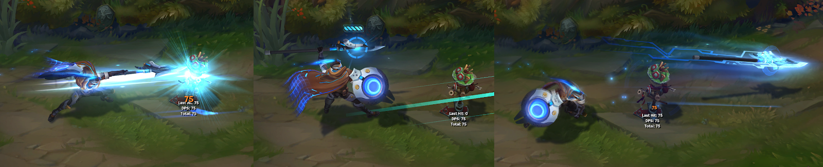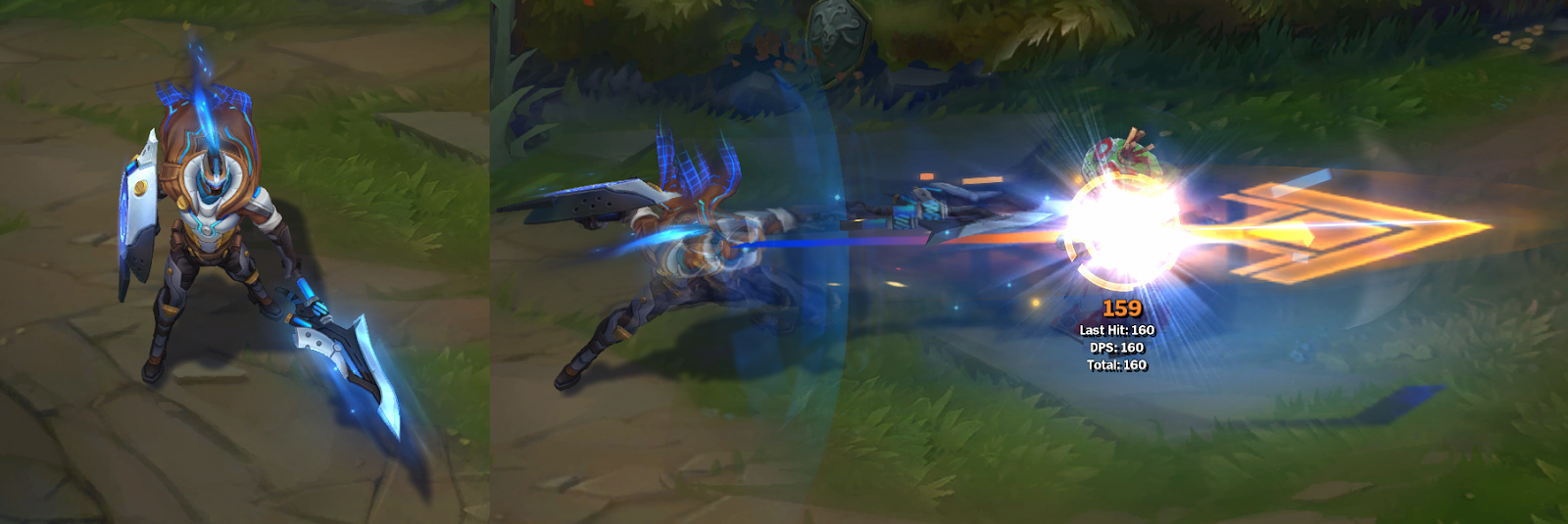 Chiêu Q với hiệu ứng chọc gần và ném lao từ xa, thậm chí còn có thanh trạng thái khi đang giữ Q luôn