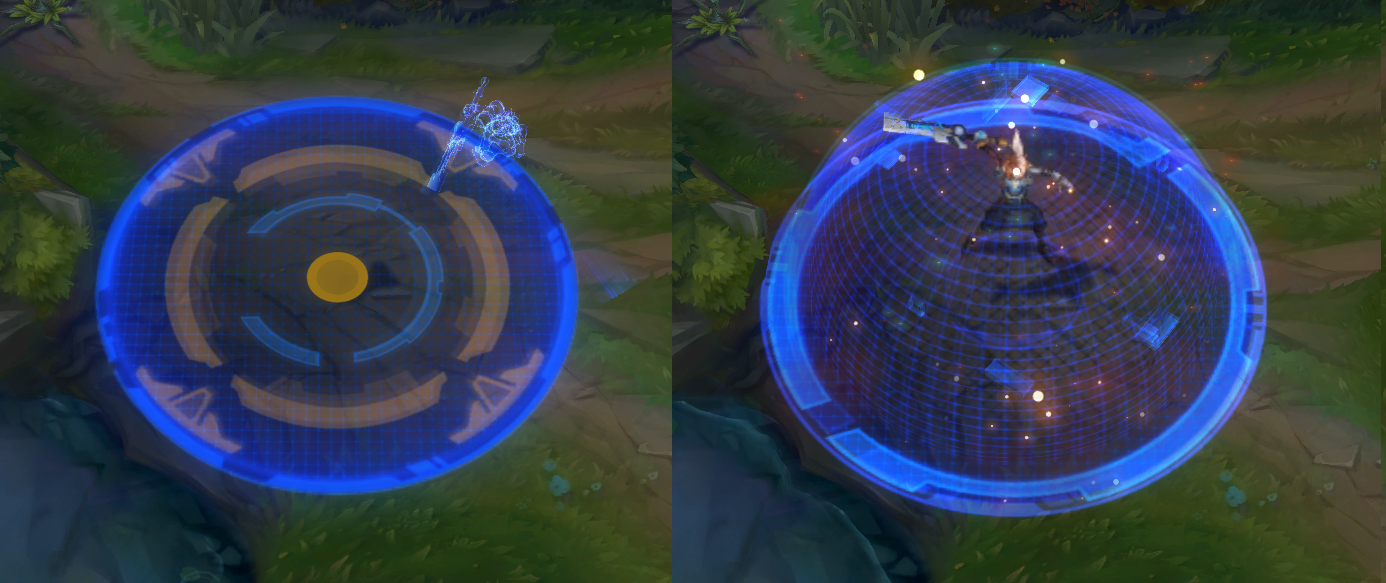 Chiêu E là lúc Pantheon được khoe chiếc khiên công nghệ siêu xịn của mình