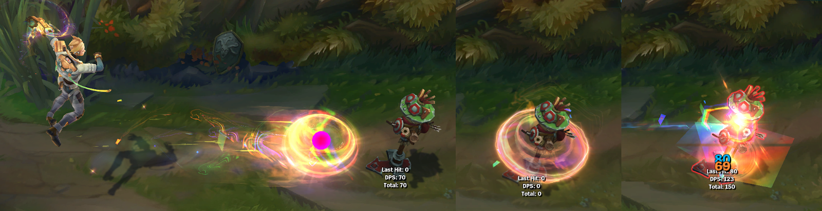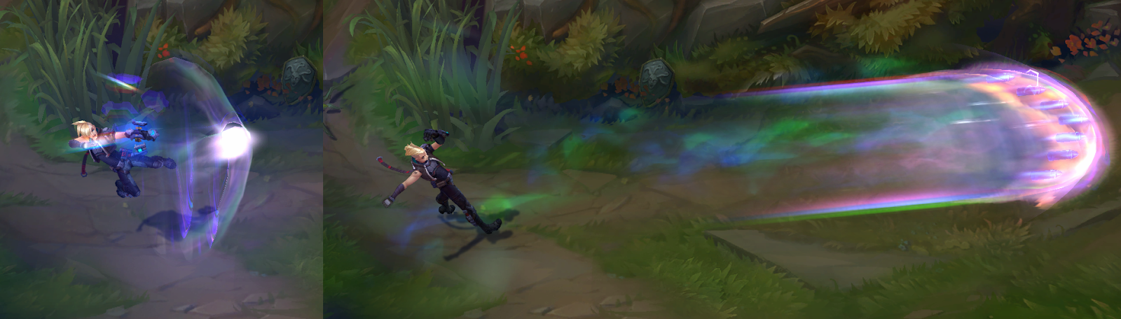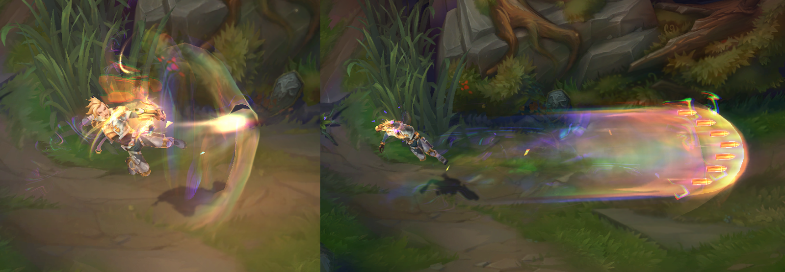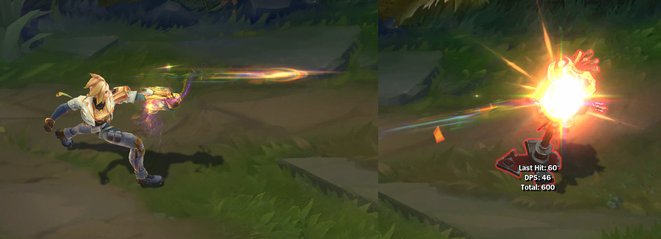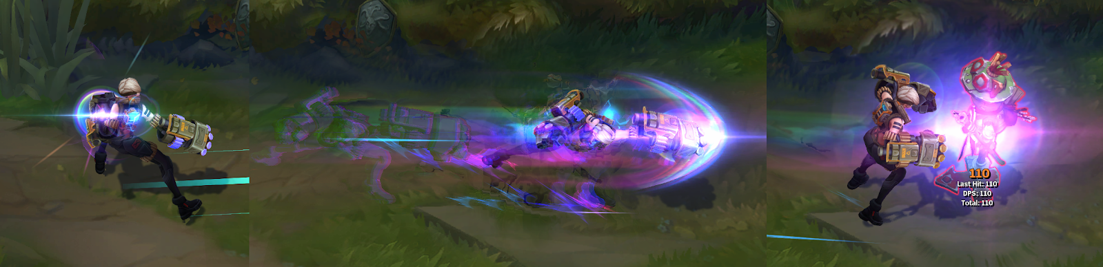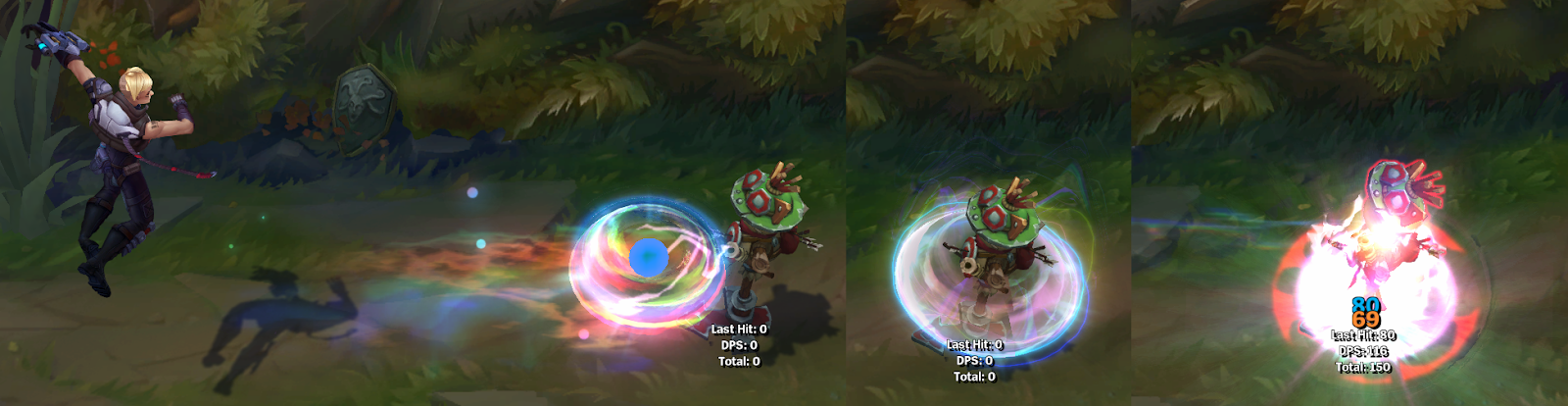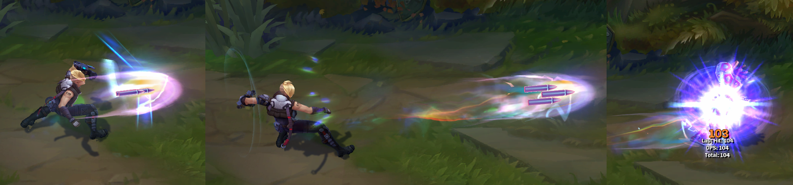 Chiêu Q với hiệu ứng ném ra những quả tên lửa cực chất