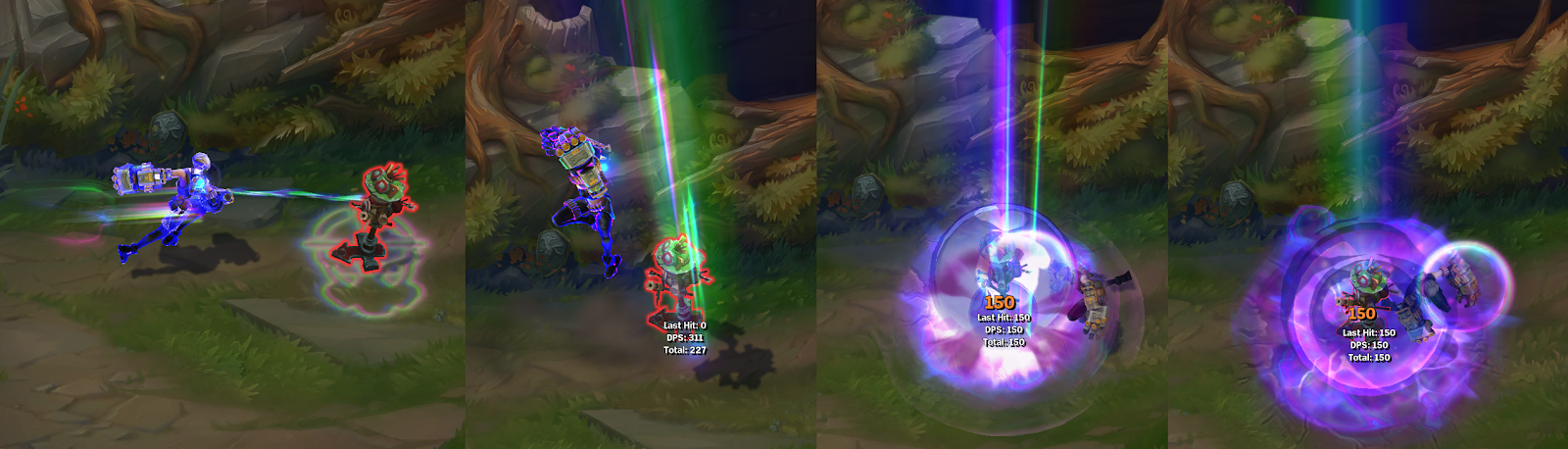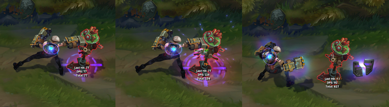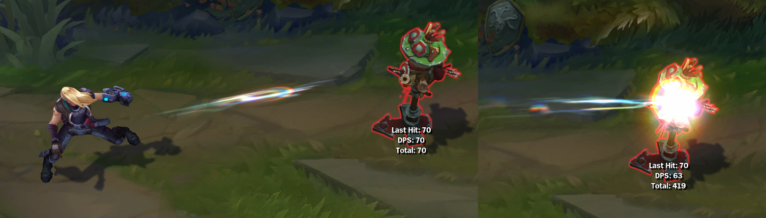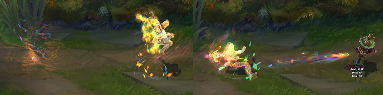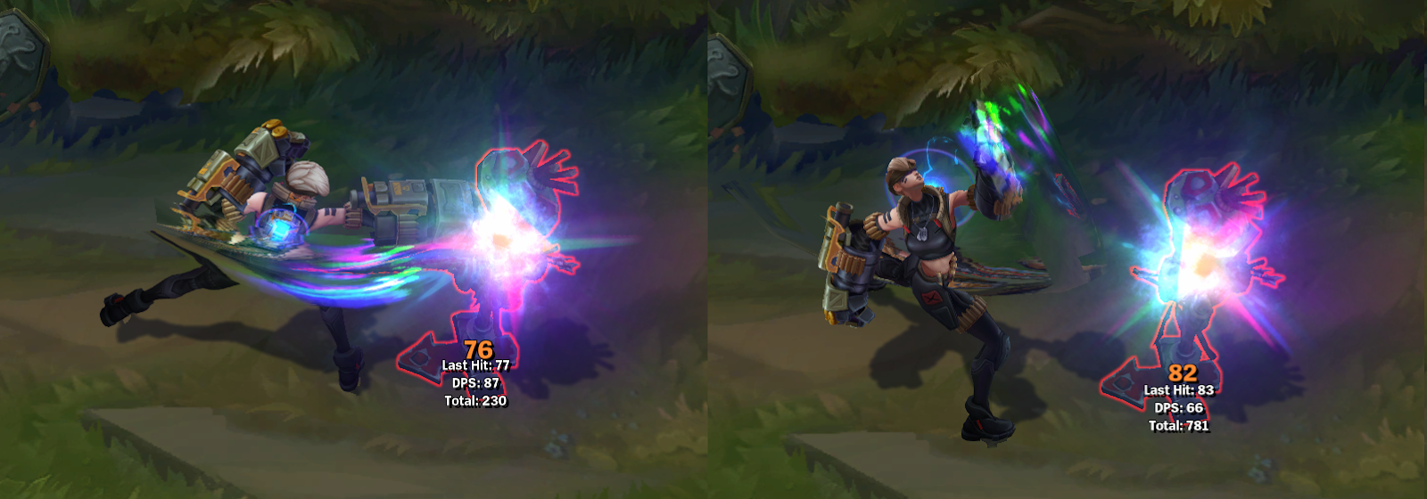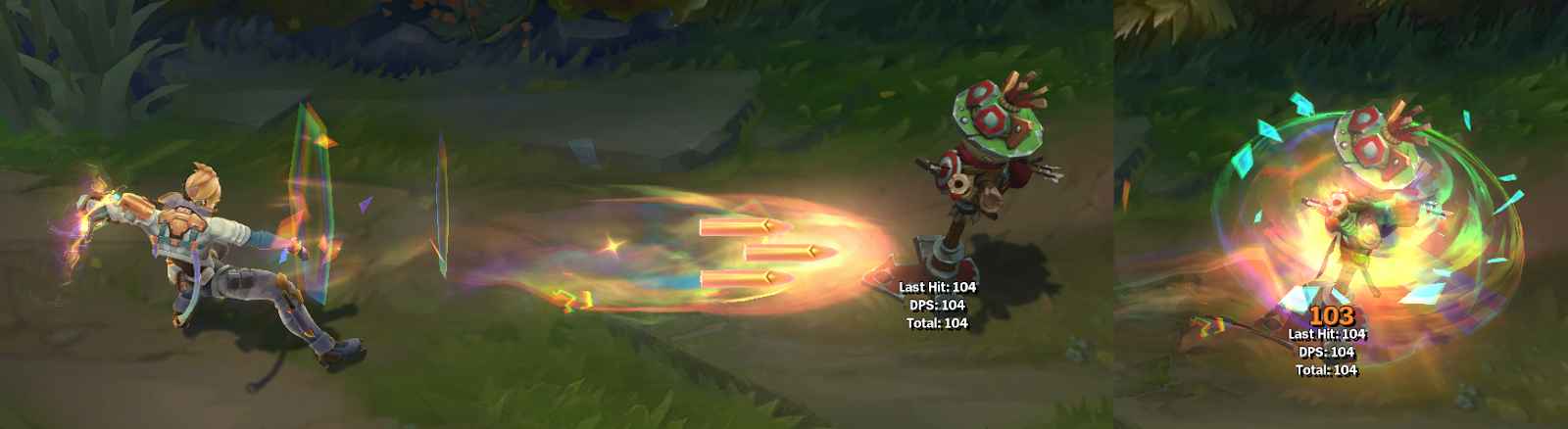 Chiêu Q với hiệu ứng ném ra những quả tên lửa cực chất