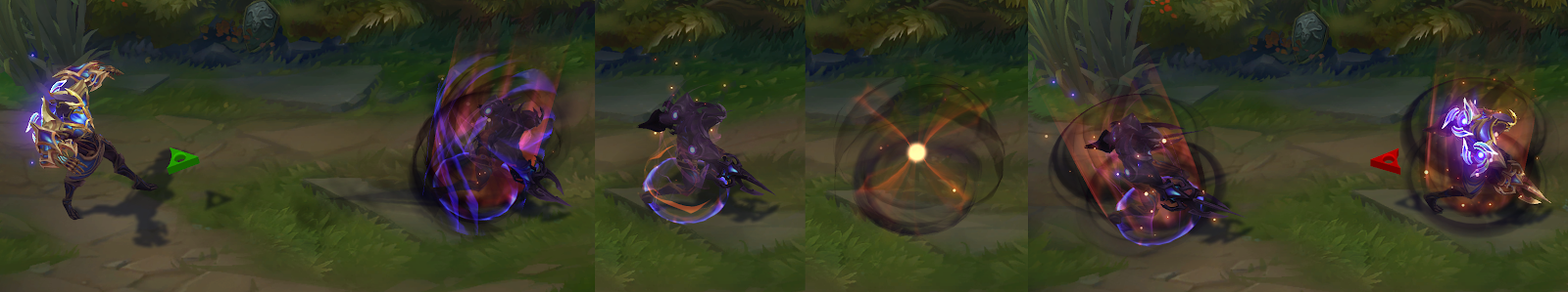 Trang phục huyền thoại nên Zed cũng có vô vàn hiệu ứng hay ho, đáng nhớ nhất là màn lộ mặt của hắn