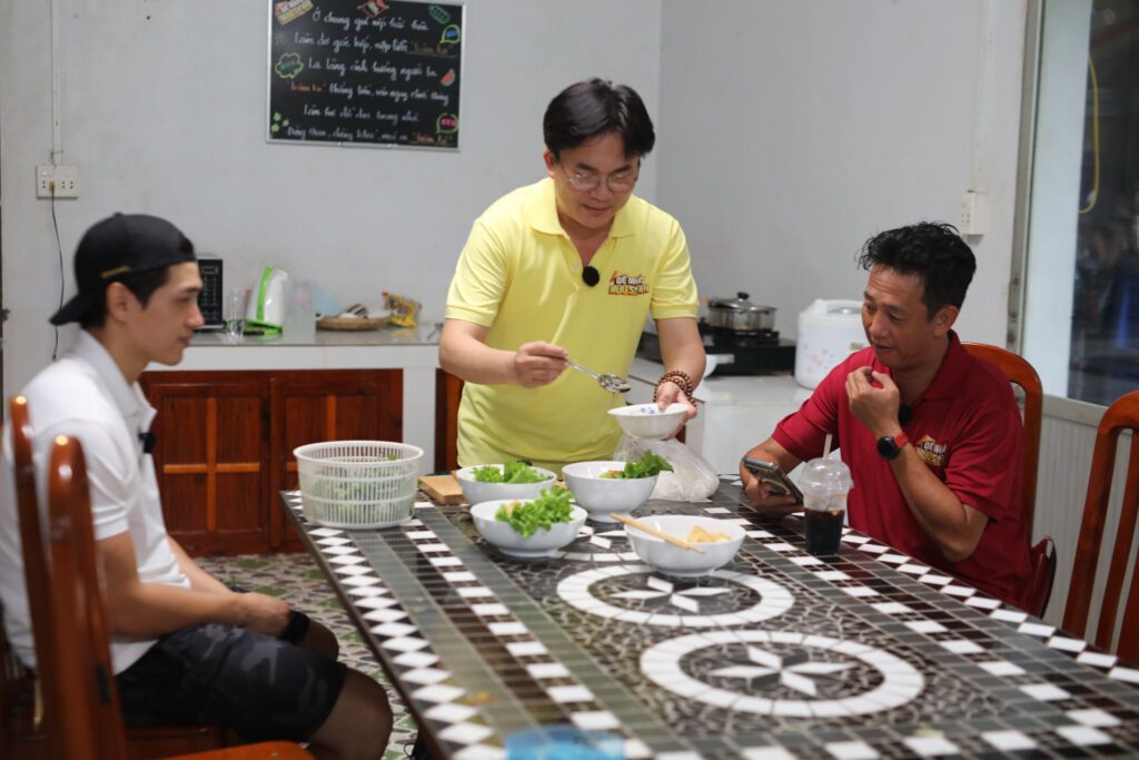 Một nhóm gồm Huy Khánh, Quỳnh Lý và Vĩnh Thích Ăn Ngon đến vùng xứ dừa Bến Tre (nay là Vĩnh Long), trong khi Lê Nam và Ma Ran Đô quay về nhà chung để đón nghệ sĩ Đại Nghĩa gia nhập. Vừa đặt chân đến, Đại Nghĩa đã xắn tay vào bếp nấu bún nước tương cho mọi người ăn sáng từ những nguyên liệu anh mang theo.