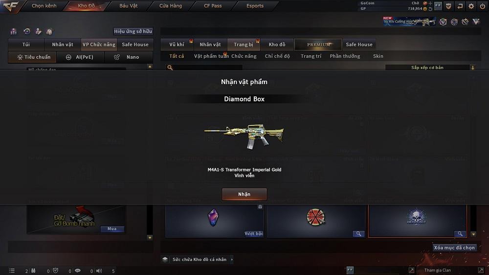 Ngoài ra người chơi có thể sở hữu các vật phẩm vĩnh viễn như: Dragon Blade Purple Dragon, Colt 1911 Space Rabbit, M4A1-S Transformer Imperial Gold từ item “Hòm Thử Thách Chiến Binh”.