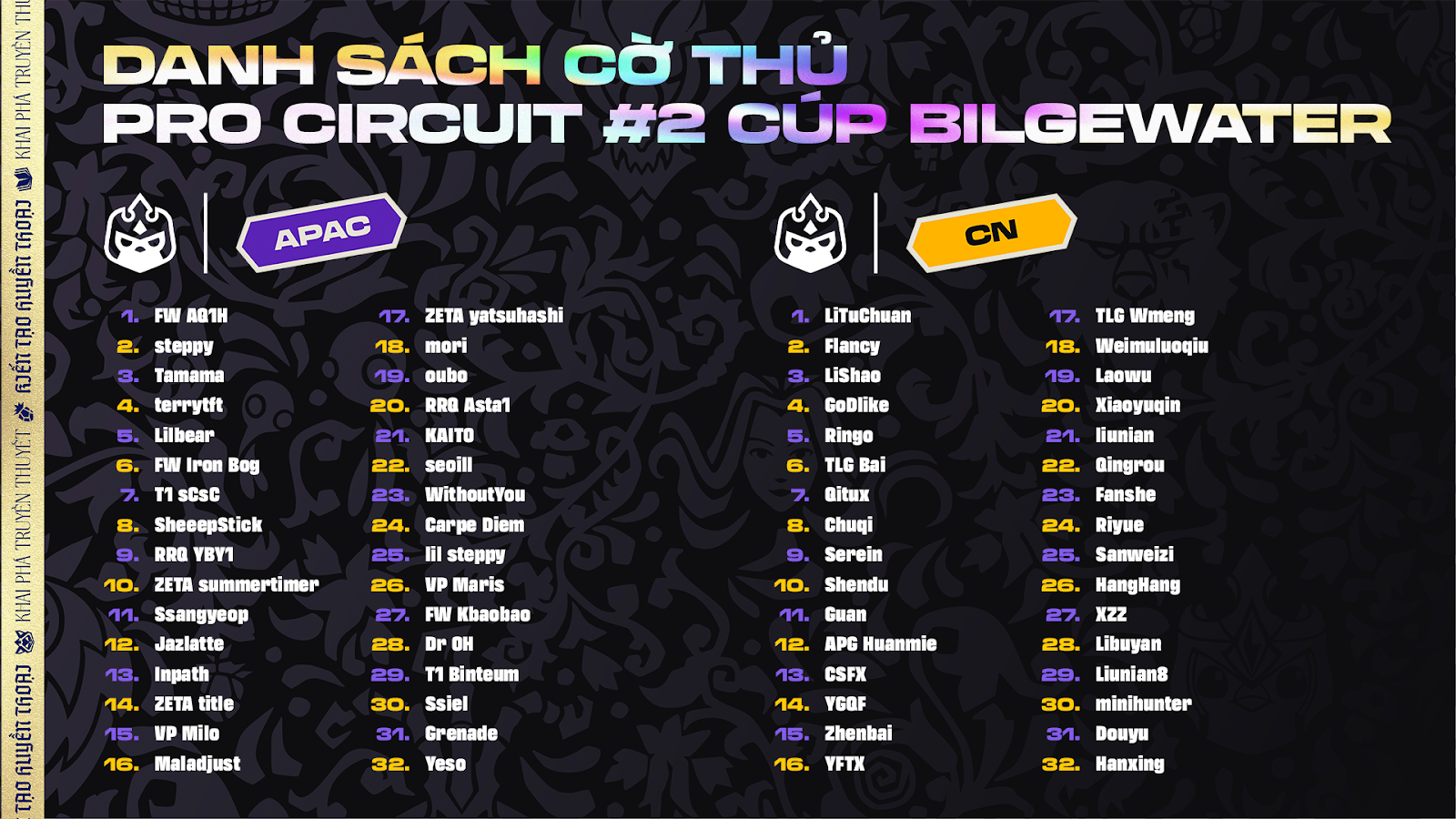 Ở kỳ Cúp Shurima khai màn Mùa giải 16, tuyển thủ AQ1H của Hồng Kông (Trung Quốc) đã giành chức vô địch. Nhưng sang kỳ Cúp Bilgewater sắp diễn ra, cơ hội sẽ lại mở rộng cho các tuyển thủ ĐTCL Việt Nam khi họ lại có dịp tranh tài cùng những người chơi ĐTCL hàng đầu của khu vực Trung Quốc. Danh sách tuyển thủ cũng được phân chia được dựa theo hệ thống Snake Seeding từ thứ hạng chung cuộc ở Cúp Shurima trước đó tại mỗi khu vực. Qua đó, Cúp Bilgewater ở hai khu vực APAC – CN vẫn đảm bảo đủ số lượng 32 tuyển thủ.