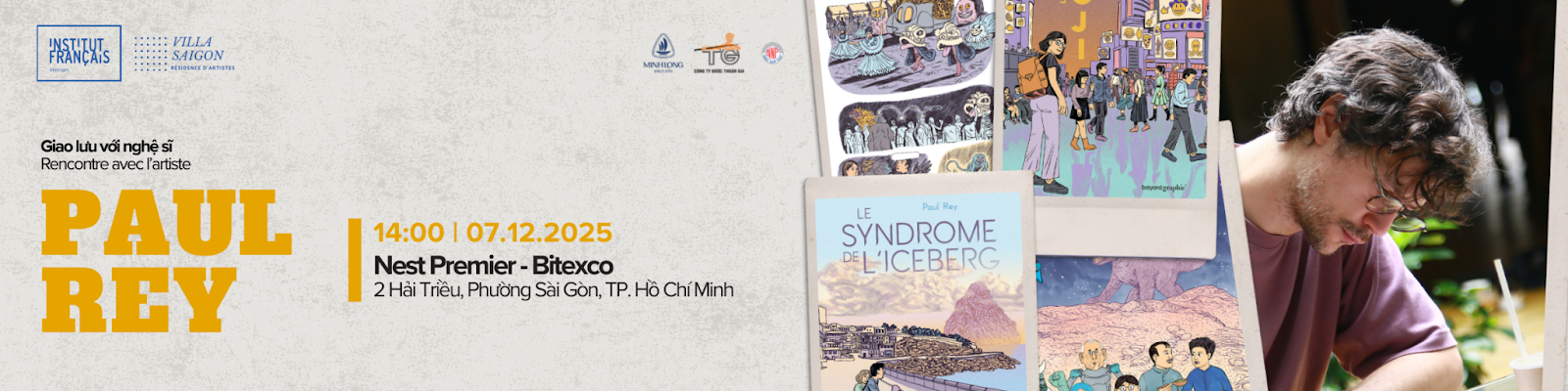 Trong khuôn khổ chương trình nghệ sĩ lưu trú Villa Saigon, Viện Pháp tại Việt Nam hân hạnh giới thiệu buổi trò chuyện và thảo luận với nghệ sĩ minh họa truyện tranh người Pháp Paul Rey, xoay quanh dự án truyện tranh “Futurs submergés” (tạm dịch : Tương lai bị nhấn chìm) và quá trình hoạt động nghệ thuật của anh trong ngành truyện tranh.