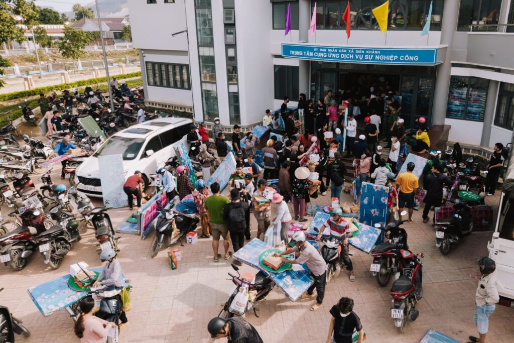 Tiếp đó, đoàn tiếp tục di chuyển đến xã Diên Khánh – một trong những địa phương bị thiệt hại nặng nề nhất của tỉnh Khánh Hòa sau thiên tai. Với sự phối hợp của chính quyền địa phương, hơn 200 phần quà và nhiều nhu yếu phẩm thiết yếu đã được trao tận tay các hộ dân gặp khó khăn.
