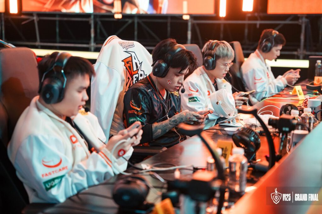 Ngay lúc này, khán đài Cung điền kinh Mỹ Đình cũng đã được lấp đầy bởi khán giả và cổ động viên “trước giờ cuồng nhiệt”. Những lá cờ, những dải banner và cả những tiếng reo hò vang dội đã khiến không khí nơi đây trở nên náo nhiệt, sôi động hơn bao giờ hết. Tất cả đều đang đổ dồn ánh mắt về sân khấu lớn, nơi trận chiến cuối cùng giữa Saigon Phantom, One Star Esports và FPT x Flash đang chuẩn bị diễn ra vô cùng khốc liệt để tìm ra ngôi vương Đấu Trường Danh Vọng Mùa Đông 2025.