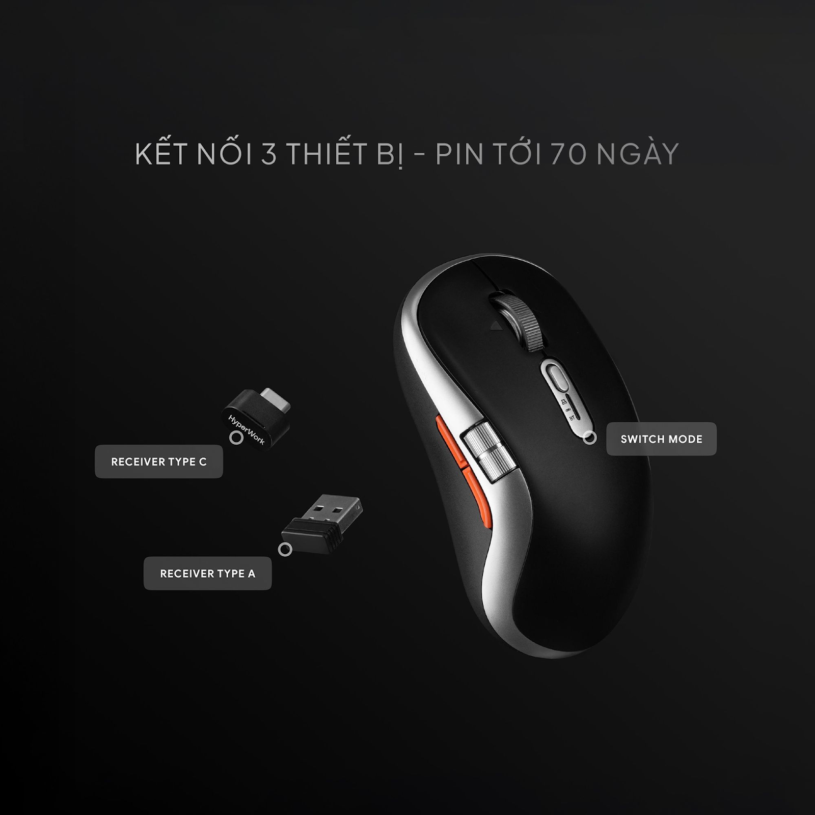 - Kết nối linh hoạt: Hỗ trợ Bluetooth, receiver Type-A, Type-C kết nối đồng thời với 3 thiết bị.
