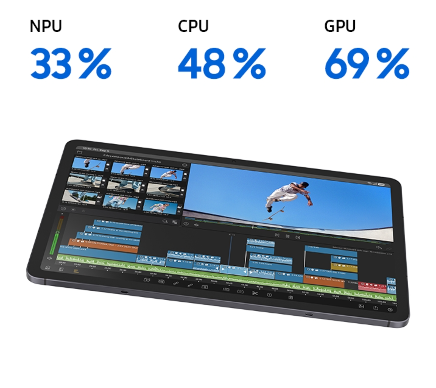 Galaxy Tab S11 series mang đến hiệu năng mạnh mẽ nhất từ trước đến nay, kết hợp phần cứng tiên tiến và trải nghiệm thị giác sống động trong thiết kế mỏng nhẹ, thuận tiện cho việc di chuyển liên tục. Lần đầu tiên trên Galaxy Tab, Samsung trang bị vi xử lý 3nm thế hệ mới cho S11 series, mang lại tốc độ xử lý nhanh hơn, đa nhiệm mượt mà hơn và các tính năng AI phản hồi chính xác hơn. Galaxy Tab S11 Ultra ghi dấu bước tiến lớn về hiệu suất với mức cải thiện 33% cho NPU, 24% cho CPU và 27% cho GPU. Ngoài ra, dung lượng pin lớn và hệ thống tản nhiệt tối ưu giúp thiết bị luôn duy trì hiệu năng ổn định và bền bỉ cho công việc, sáng tạo và nhu cầu sử dụng hằng ngày.