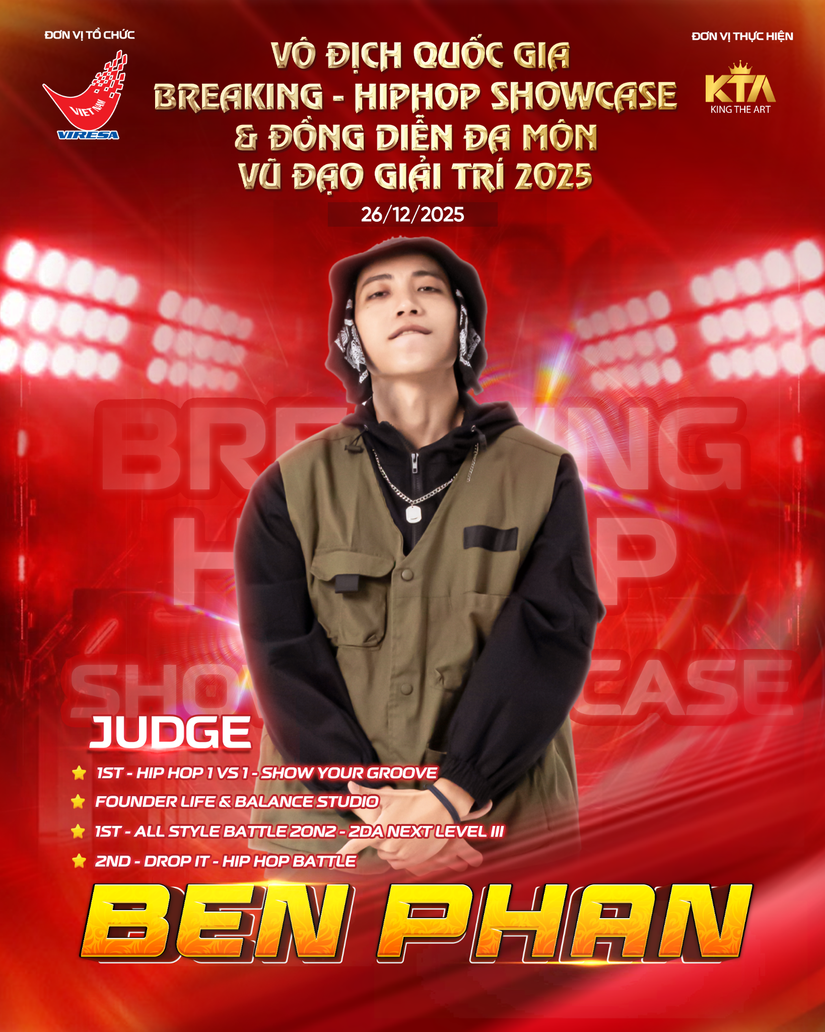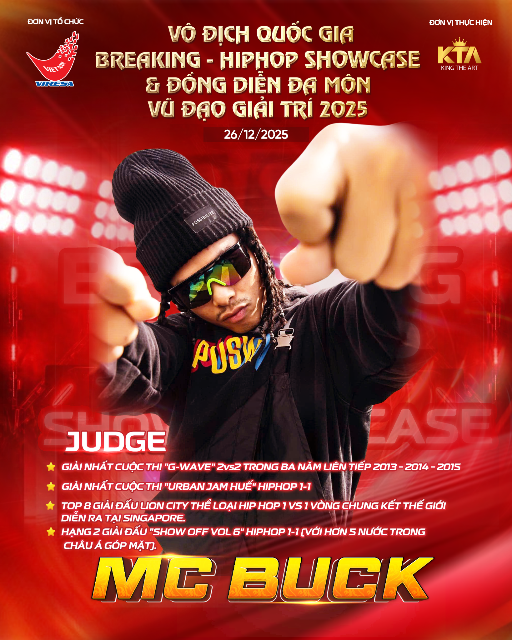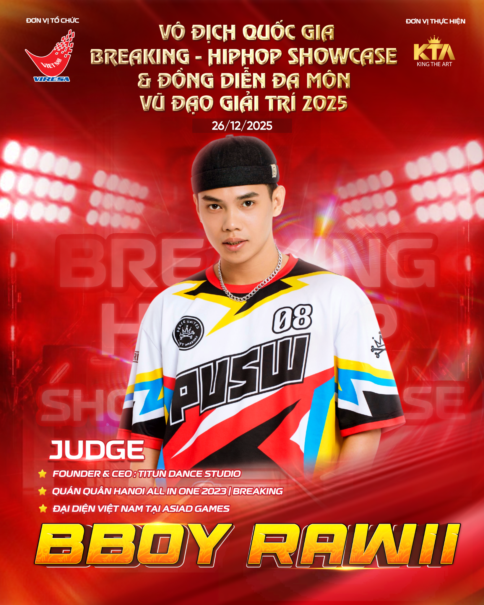 Giải đấu diễn ra vào cuối tháng 12, quy tụ dàn vận động viên tài năng cùng những nhóm biểu diễn xuất sắc trên toàn quốc. Đây sẽ là một sân chơi rực lửa nơi kỹ thuật điêu luyện tinh thần thi đấu máu lửa và bản sắc văn hóa đường phố được tôn vinh ở mức độ chuyên nghiệp cao nhất.