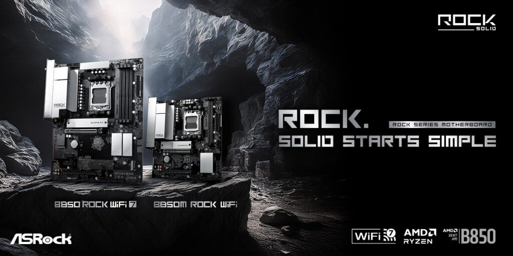 Ngày 16/01/2026 – ASRock®, nhà sản xuất Bo mạch chủ, card đồ họa, màn hình gaming, Mini PC, bộ nguồn máy tính và tản nhiệt nước AIO hàng đầu thế giới, hôm nay chính thức giới thiệu dòng sản phẩm Rock Series hoàn toàn mới, được thiết kế để cung cấp các giải pháp toàn diện cho người dùng tự lắp ráp PC, bao gồm các mẫu như B850 Rock WiFi 7 và B860 Rock WiFi 7 chuẩn ATX, cũng như B850M Rock WiFi và B860M Rock WiFi chuẩn mATX, mang đến hiệu năng đáng tin cậy và thiết kế đẹp mắt, tinh tế — tất cả đều với mức giá phải chăng.