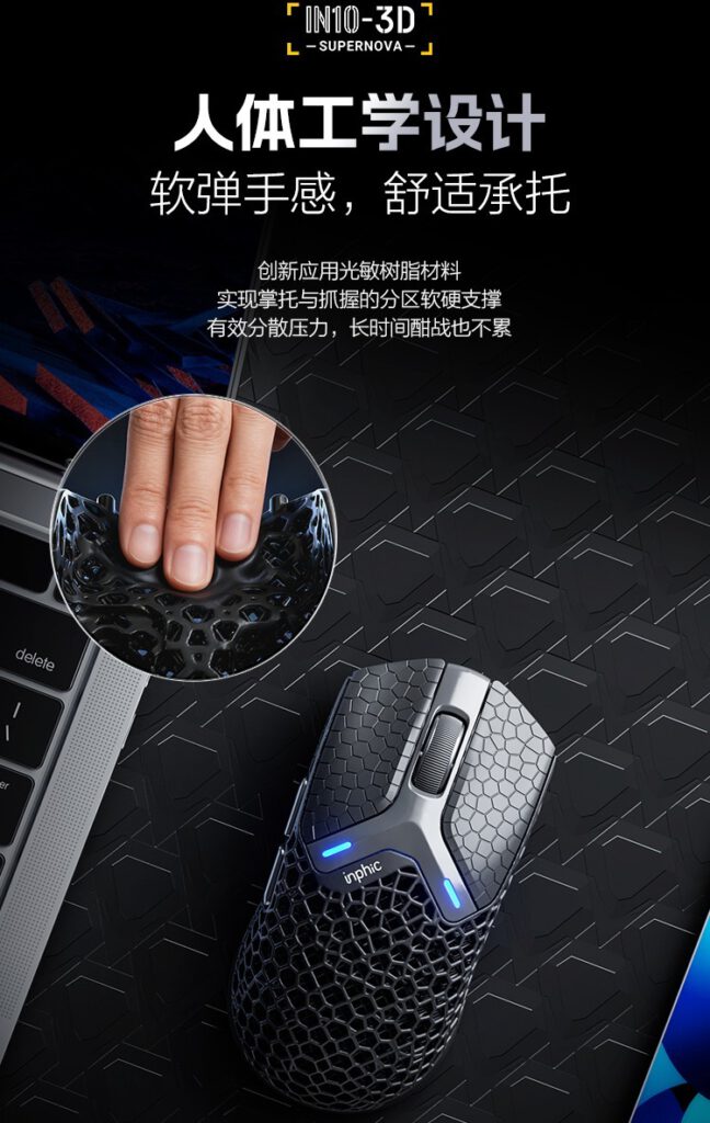- In 3D màng sinh học (Model IN10 3D): Công nghệ duy nhất thế giới giúp chuột có khả năng tự đàn hồi, ôm khít lòng bàn tay người dùng.