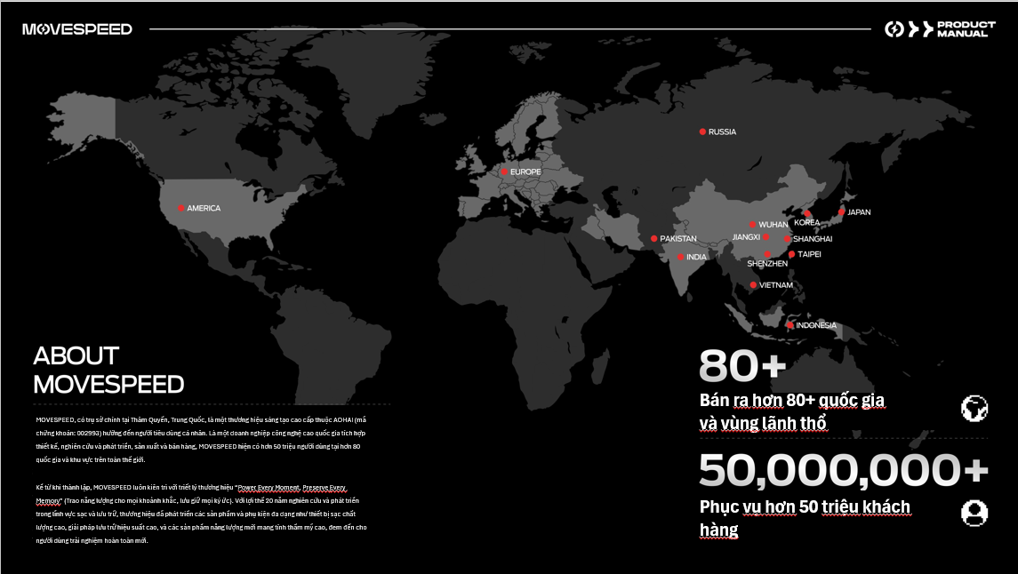 AOHAI thành lập MOVESPEED với mục tiêu đưa các giải pháp công nghệ sáng tạo, hiệu quả và an toàn đến người dùng toàn cầu. Là thương hiệu tập trung vào các sản phẩm công nghệ cao và đổi mới liên tục trong các lĩnh vực: hệ thống sạc & lưu trữ năng lượng, truyền dữ liệu, lưu trữ dữ liệu và các giải pháp sống thông minh. MOVESPEED cam kết mang đến những sản phẩm có chất lượng vượt chuẩn, đáp ứng kỳ vọng ngày càng cao của người dùng trong kỷ nguyên công nghệ mới.