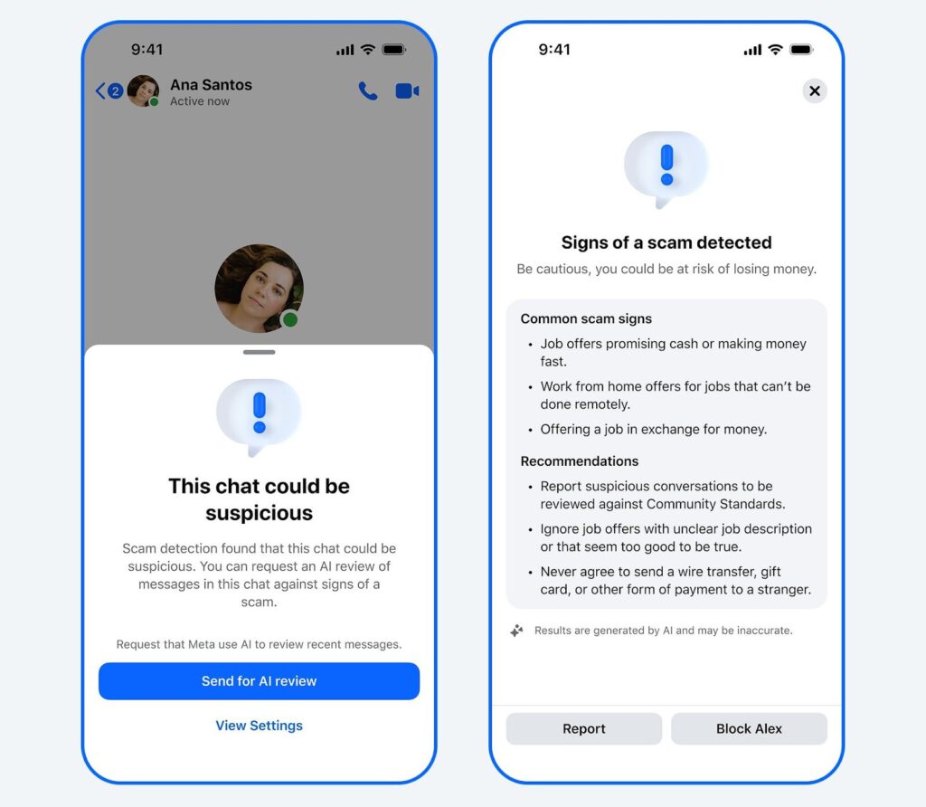 2. Mở rộng tính năng phát hiện lừa đảo nâng cao trên Messenger: Meta đang triển khai tính năng phát hiện lừa đảo nâng cao tới nhiều quốc gia hơn trong tháng này, giúp cảnh báo người dùng về các hình thức lừa đảo phổ biến như lời mời làm việc không đáng tin.
