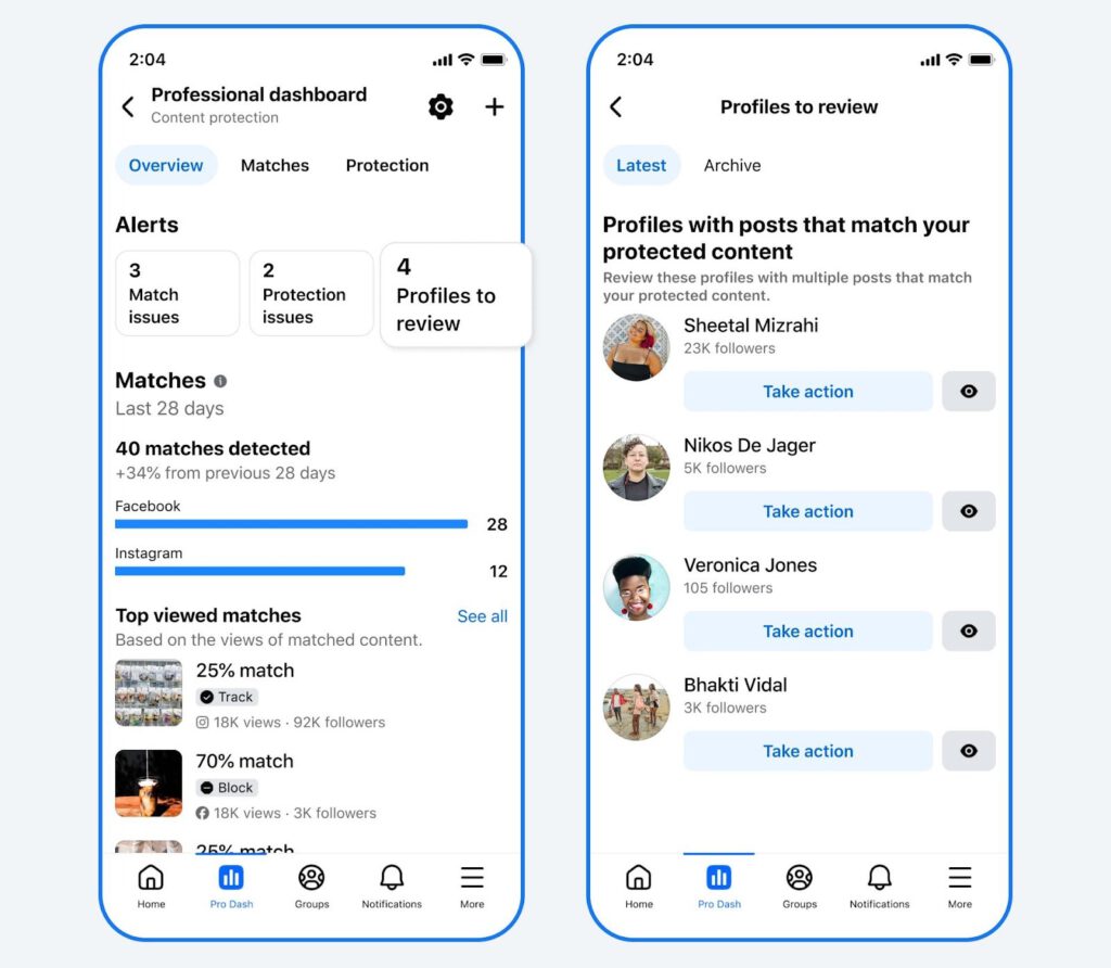 Trong năm qua, Meta đã cải thiện tính phù hợp của Bảng tin (Feed) và Reels bằng cách quyết liệt ngăn chặn nội dung rác, đồng thời hạn chế các tài khoản giả mạo chèn ép những nhà sáng tạo đích thực. Gần đây, Meta đã cập nhật hướng dẫn sáng tạo nội dung nhằm làm rõ định nghĩa về “tính nguyên bản”, đồng thời ra mắt công cụ giúp nhà sáng tạo báo cáo hành vi mạo danh và bảo vệ thành quả sáng tạo của mình.