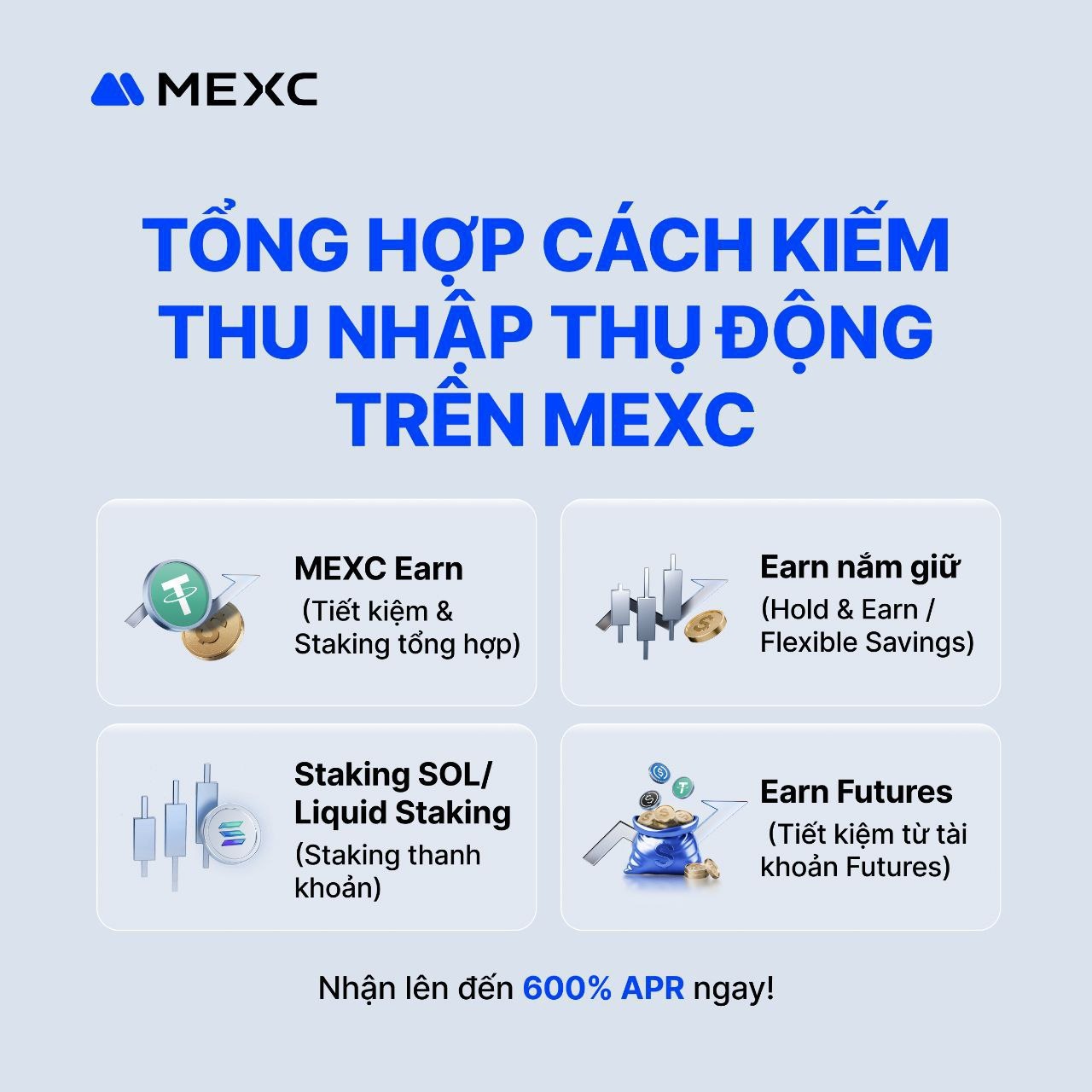 ⚠️ Lưu ý: Việc tham gia các sản phẩm tài chính trên MEXC là hoàn toàn tự nguyện. Các chỉ số APR có thể thay đổi theo điều kiện thị trường và không cấu thành lời khuyên đầu tư từ phía nền tảng.