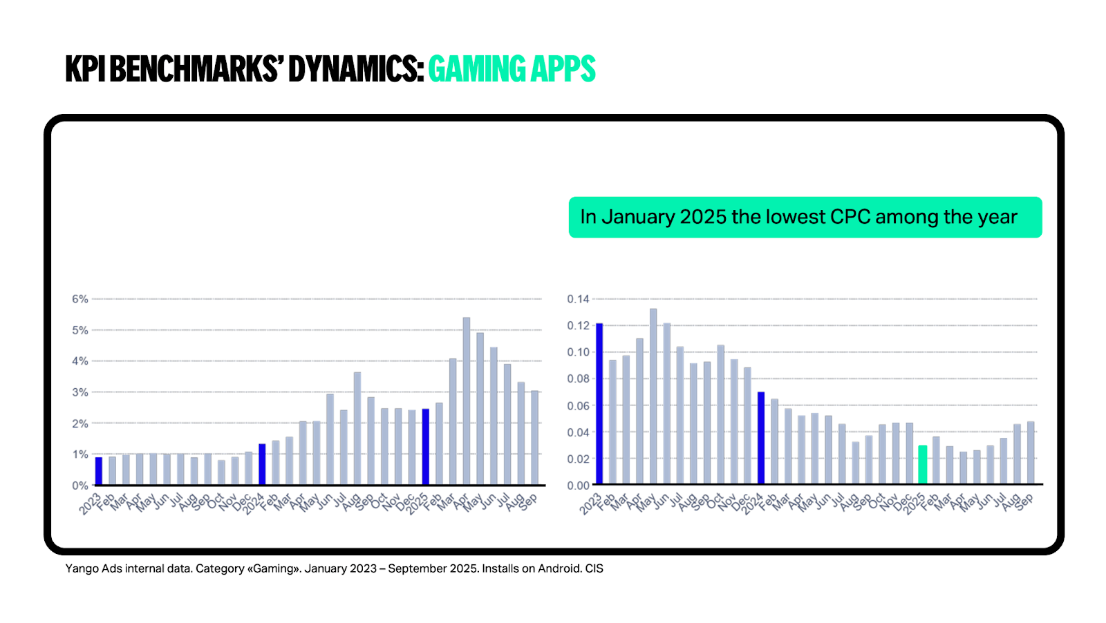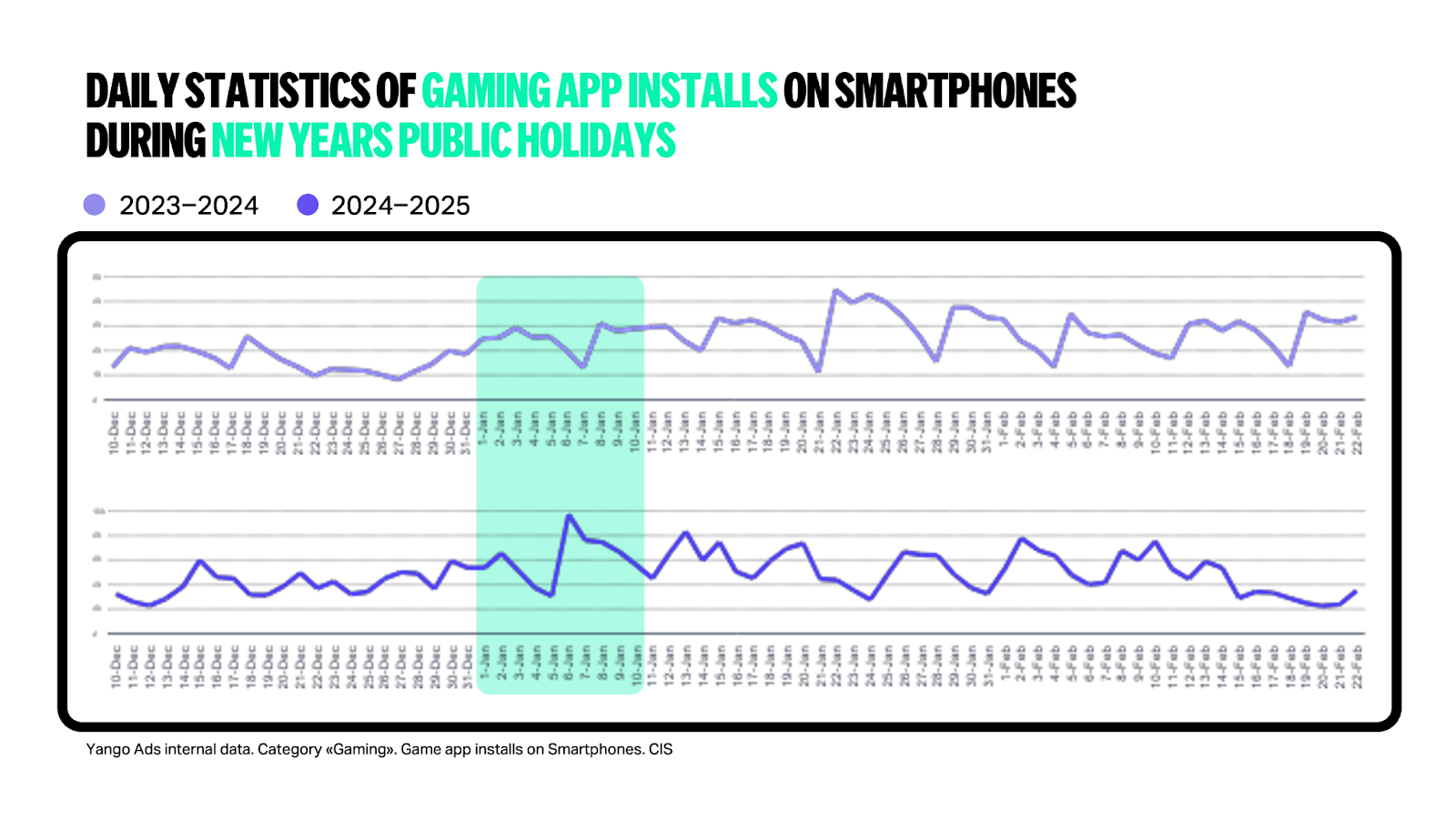 Điều khiến mô hình này trở thành “mỏ vàng” cho các nhà phát triển chính là tính dễ dự đoán. Sự bùng nổ tương tự xuất hiện nhất quán qua các chu kỳ nghỉ lễ 2023-2024 và 2024-2025, biến tháng 1 trở thành một trong những thời điểm tăng trưởng đáng tin cậy nhất cho các ứng dụng game tại CIS.