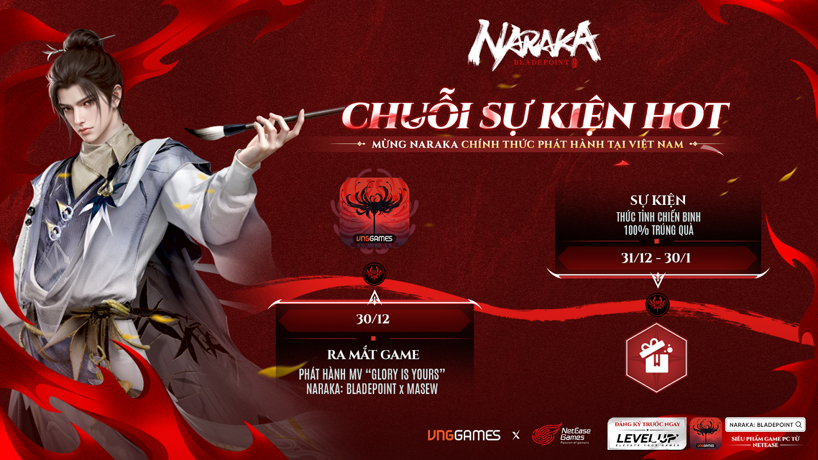 TP. Hồ Chí Minh, ngày 30.12.2025 – VNGGames, Nhà Phát Hành game hàng đầu Việt Nam và Đông Nam Á, chính thức ra mắt sản phẩm NARAKA: Bladepoint tại thị trường Việt Nam. Trước đó từ ngày 22.12, tựa game PC thể loại sinh tồn kết hợp yếu tố võ hiệp do hãng NetEase sản xuất đã cho phép người chơi đăng ký trước thông qua nền tảng Level Up và nhận được sự hưởng ứng sôi nổi, nhiệt tình đến từ cộng đồng game thủ nước nhà với hàng chục nghìn lượt ghi danh từ khá sớm.