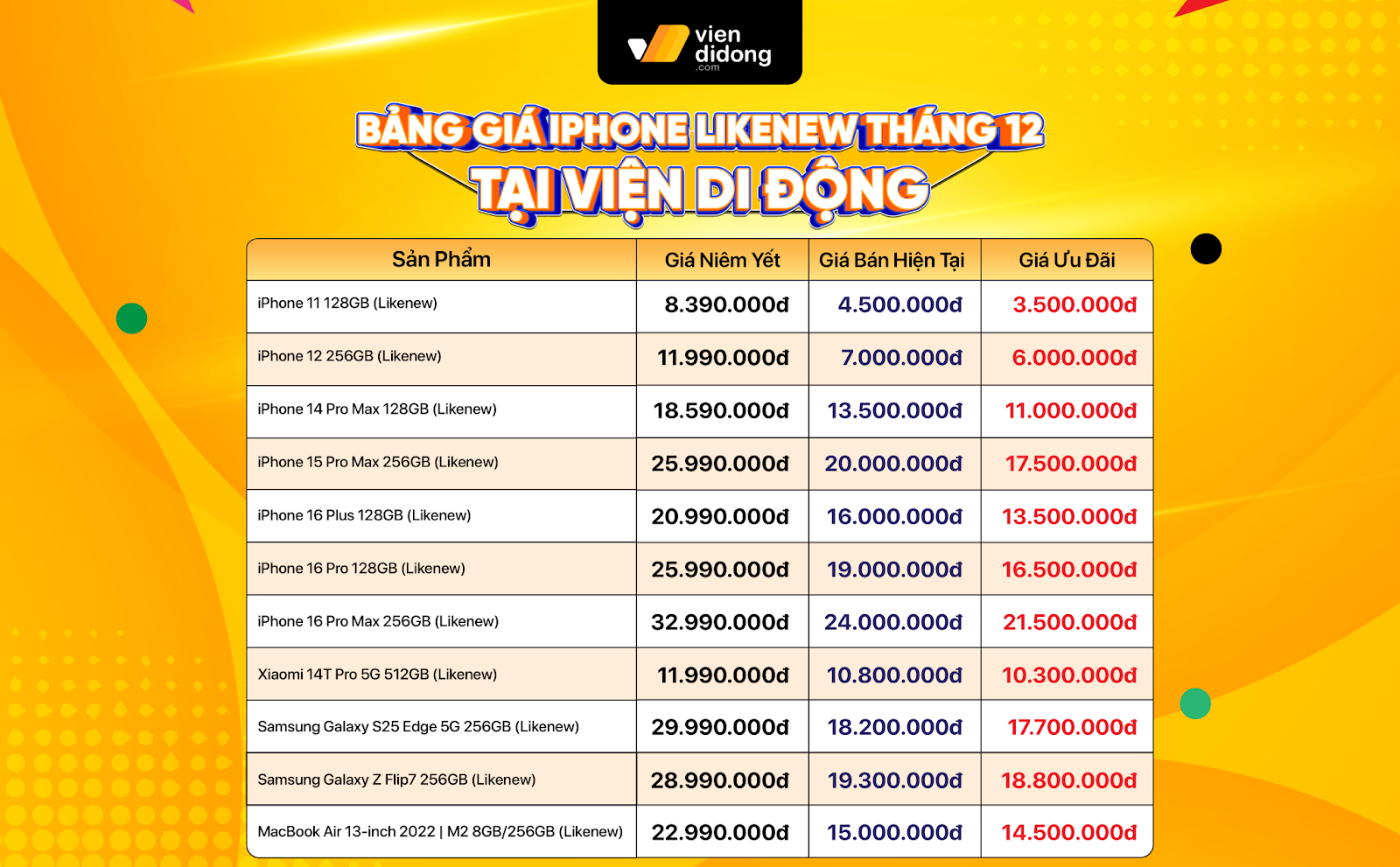 Ghi nhận xu hướng muốn nâng cấp sản phẩm công nghệ dịp cuối năm, Viện Di Động triển khai hàng loạt ưu đãi với tâm điểm là các dòng máy đã qua sử dụng (Likenew) và phụ kiện chính hãng.