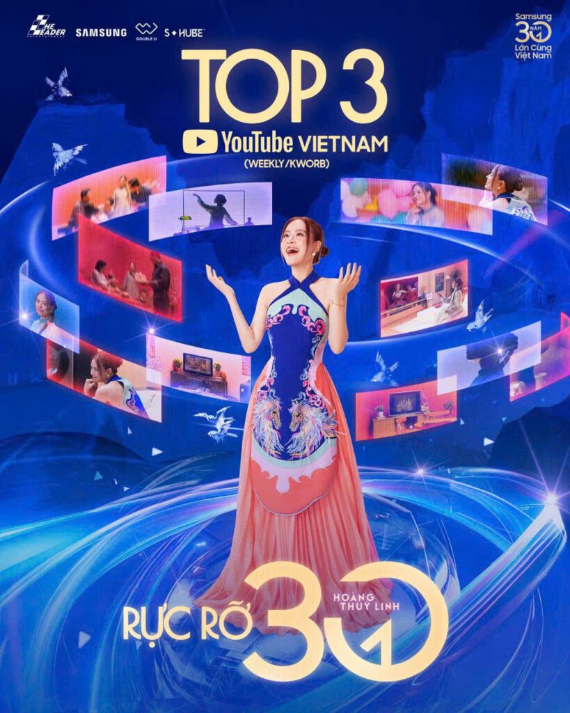 Nhìn vào các con số, có thể thấy Rực Rỡ 30 không chỉ đạt thành tích tốt về mặt hiển thị, mà còn cho thấy độ lan tỏa đa tầng của một sản phẩm âm nhạc được công chúng đón nhận một cách chủ động. Việc lọt Top 2 Bài hát hàng đầu tại Việt Nam (theo YouTube Charts – từ 03/01/2026 – 09/01/2026) phản ánh sức xem bền bỉ của MV, thay vì chỉ bùng nổ ngắn hạn theo hiệu ứng ra mắt. Song song đó, vị trí Top 5 iTunes Vietnam Top Songs cho thấy âm nhạc của Hoàng Thùy Linh vẫn giữ được vị thế riêng trong bối cảnh các nguồn nhạc miễn phí chiếm ưu thế.