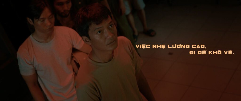 Cùng với đó, câu tagline “Việc nhẹ lương cao, đi dễ khó về” như chìa khóa giải mã toàn bộ poster: một lời cảnh báo quen thuộc, một thông điệp mạnh mẽ rằng bất cứ ai nhẹ dạ, cả tin, đều có thể trở thành nạn nhân bị treo ngược và tra tấn dã man.