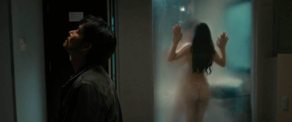 Nhân vật của Hoài Lâm cũng không khá hơn là mấy dù vẫn mặc quần áo nhưng thủng lỗ chỗ khắp nơi trong khi khắp cơ thể là những vết máu chưa kịp khô. Từ cổ, miệng cho đến khuôn mặt anh cũng đầy rẫy những vết tích từ những cuộc tra tấn.