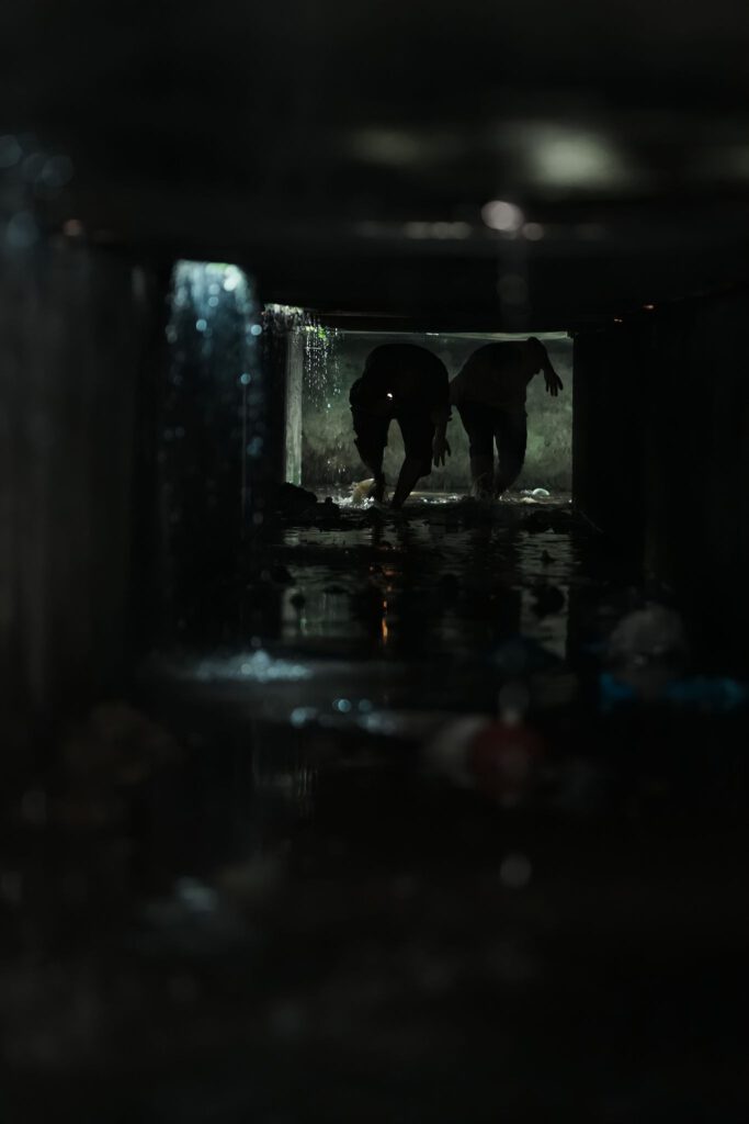 “Tôi không sợ nhưng vẫn có cảm giác ớn lạnh, nổi da gà”, diễn viên Quang Tuấn chia sẻ trong thời gian nghỉ giữa cảnh quay để tổ thiết kế set-up lại bối cảnh. Anh cho biết, dù từng đóng phim Địa đạo có cảnh chui hầm trong không gian còn chật chội hơn nhưng đây là lần đầu tiên anh phải chui cống đóng phim. Nam diễn viên kể thêm: “Trong đó có rất nhiều thứ như rác bẩn, chuột, gián. Ngay cả khi hoàn thành cảnh quay về nhà tắm xong tôi vẫn có cảm giác ngứa. Đây là trải nghiệm đáng nhớ trong đời”.