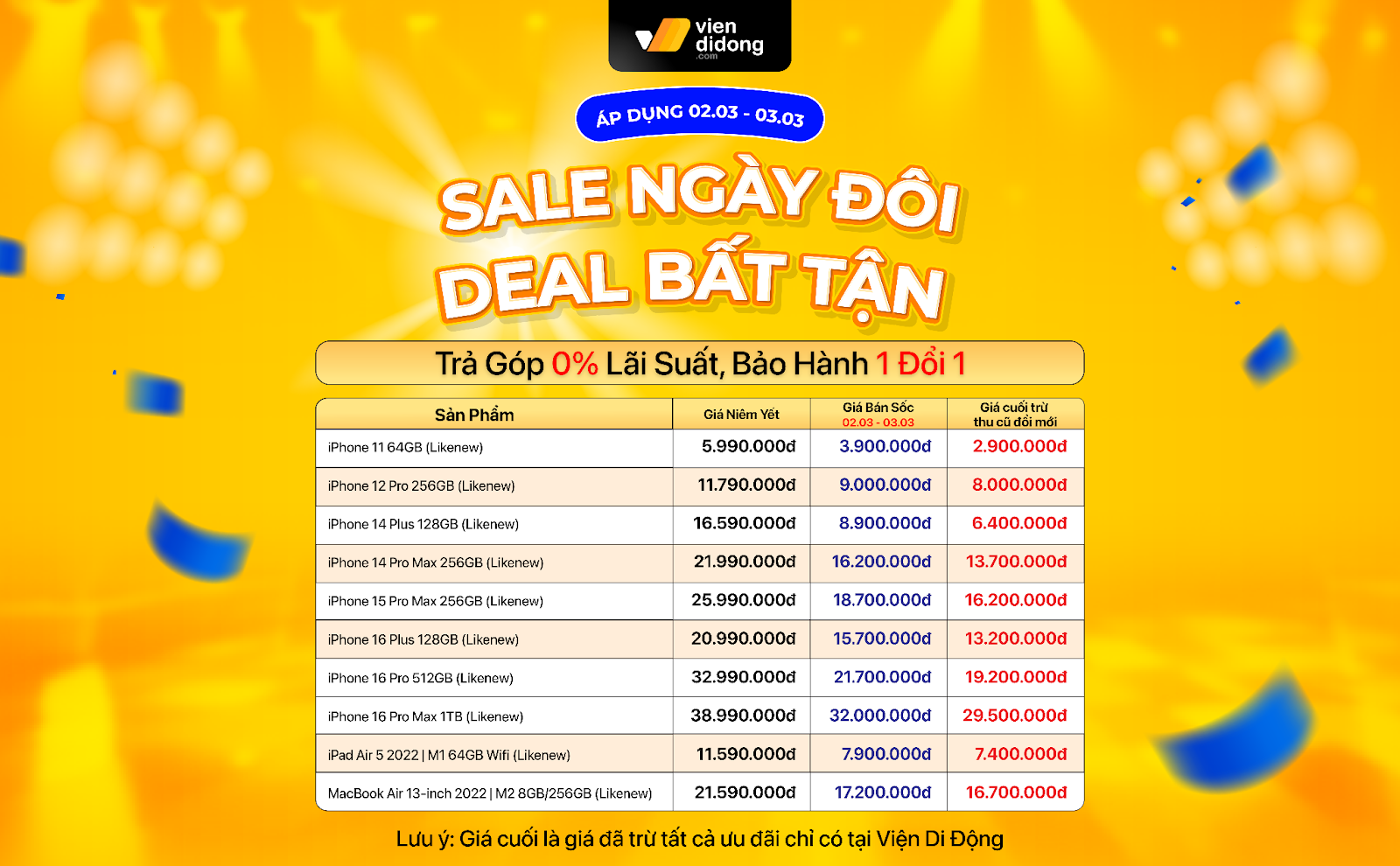 Nhiều ưu đãi đặc biệt chỉ diễn ra vào ngày 02/03 và 03/03 tại Viện Di Động.