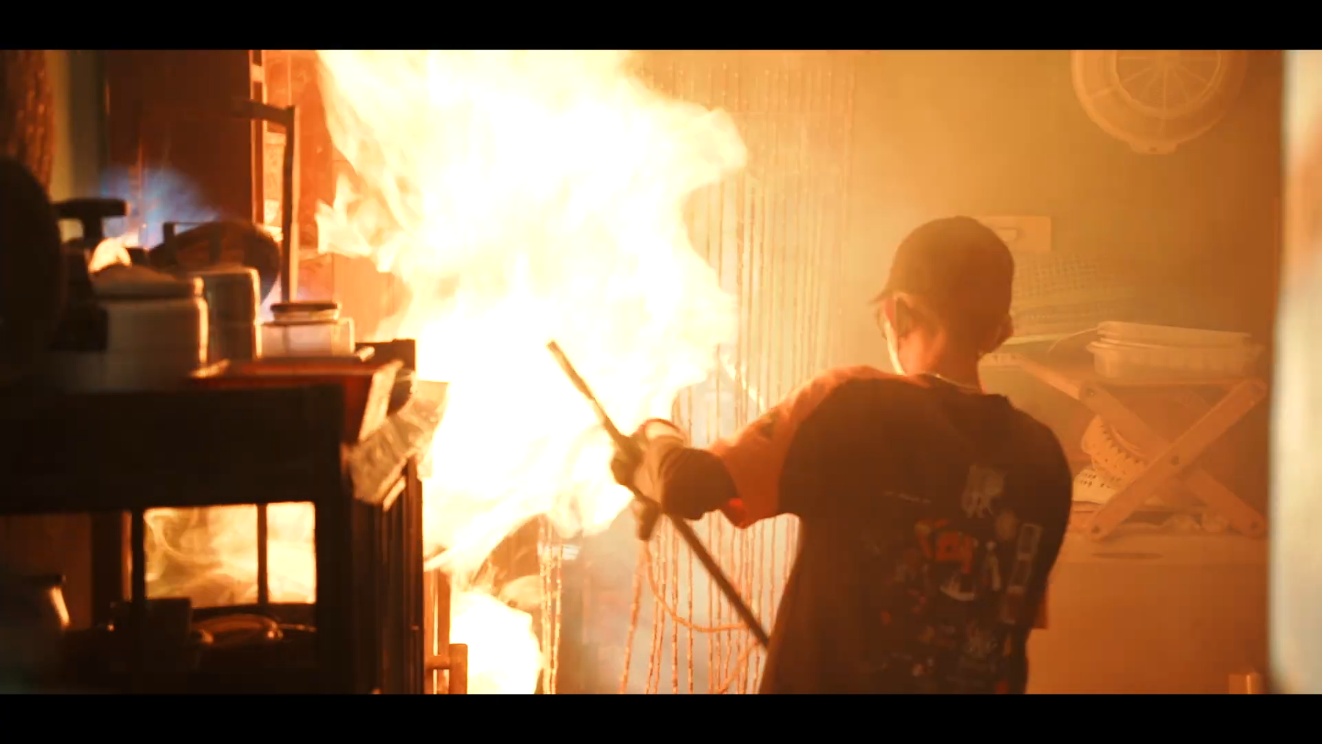 Thái Hòa hài hước chia sẻ: “Lúc đó cháy thật, đoàn phim không có đường thoát. Lúc đó mới biết ai là anh hùng thật, ai là giả”. Sức nóng từ ngọn lửa thật đã mang lại những thước phim nghẹt thở và chân thực đến mức cứu hỏa luôn phải túc trực 24/7 để đảm bảo an toàn.