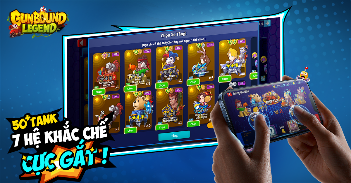 Gunbound Legend sở hữu hơn 50 loại tank, được phân chia theo 7 hệ khắc chế rõ ràng. Mỗi loại tank mang phong cách tấn công và bộ kỹ năng riêng, buộc người chơi phải đưa ra lựa chọn phù hợp với chiến thuật team, bản đồ và đối thủ. Yếu tố này tăng cường độ sâu chiến thuật và tạo ra sự đa dạng trong meta.