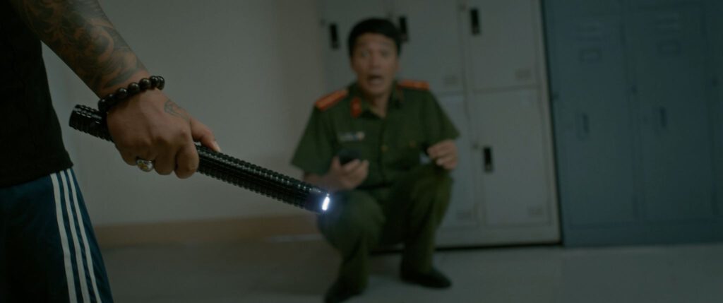 “Nhưng bây giờ tôi không biết có giữ được cái mạng nữa hay không” – lời thoại thốt ra như một lời thú nhận cay đắng, bởi anh cũng đang là nạn nhân bất đắc dĩ trong những khu tự trị. Ngay sau đó, nhân vật của Thanh Hương – “chị đại” của khu trại xuất hiện, tát thẳng vào mặt buộc anh “tỉnh lại” và tập trung. Cú tát ấy không chỉ dành cho nhân vật, mà như một cú đánh thức người xem: trong thế giới này, không có chỗ cho sự yếu đuối, tình thương.