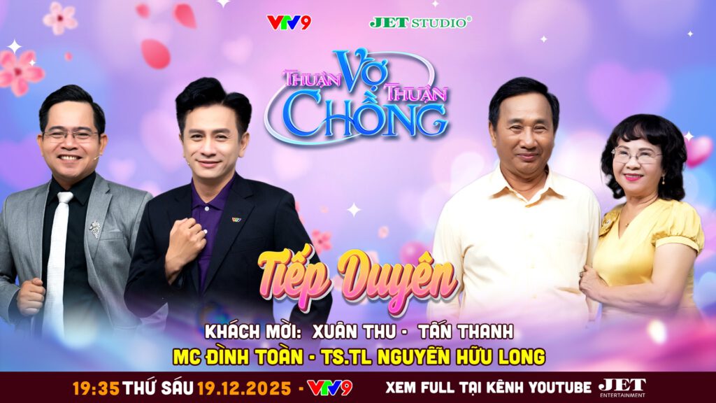 Thuận Vợ Thuận Chồng với câu chuyện “Tiếp duyên” của đôi vợ chồng Xuân Thu – Tấn Thanh sẽ phát sóng lúc 19:35, thứ Sáu ngày 19/12/2025 trên kênh VTV9. Chương trình do VTV9 phối hợp cùng Jet Studio thực hiện.