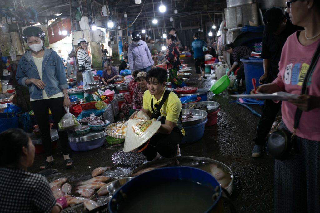 Bỏ lại hình ảnh nam thần hào hoa trên màn ảnh, Huy Khánh và Ma Ran Đô lăn xả giữa chợ Vĩnh Long. Nếu Huy Khánh tận dụng lợi thế kinh nghiệm làm thân nhanh, dụ mua nhanh thì Ma Ran Đô lại ghi điểm nhờ sự thân thiện vẻ đẹp trai, ăn nói nhẹ nhàng . Giữa lúc Huy Khánh lâm vào thế bế tắc vì bán ế trong chợ, vận may bất ngờ mỉm cười khi anh gặp được “thần tài” tại tiệm vàng. Không chỉ mua giúp nhiều món đồ, chú chủ tiệm còn hào phóng lì xì “lấy lộc” nam diễn viên và mỗi thành viên trong ê-kíp 2 USD. Ngay sau đó, Ma Ran Đô cũng theo đàn anh bước vào tiệm vàng với hy vọng đổi vận, nhưng đáng tiếc đã hụt mất “khách sộp”. Công cuộc chào mời của nam diễn viên trẻ rất vất vả.