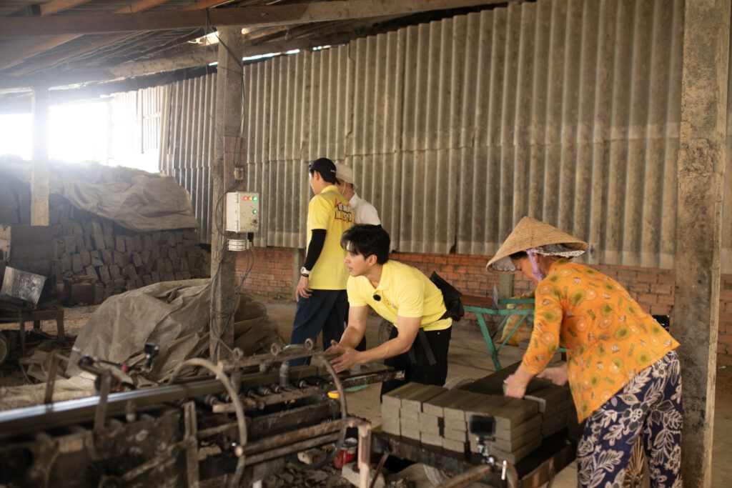 Sau buổi lao động, bốn nghệ sĩ với sự hỗ trợ của hai nhân công lành nghề đã hoàn thành 1.900 viên gạch. Dù chủ lò hào phóng cho thêm, mỗi người chỉ cầm về 15.000 đồng, nhưng đổi lại là một trải nghiệm quý báu với nghề truyền thống.