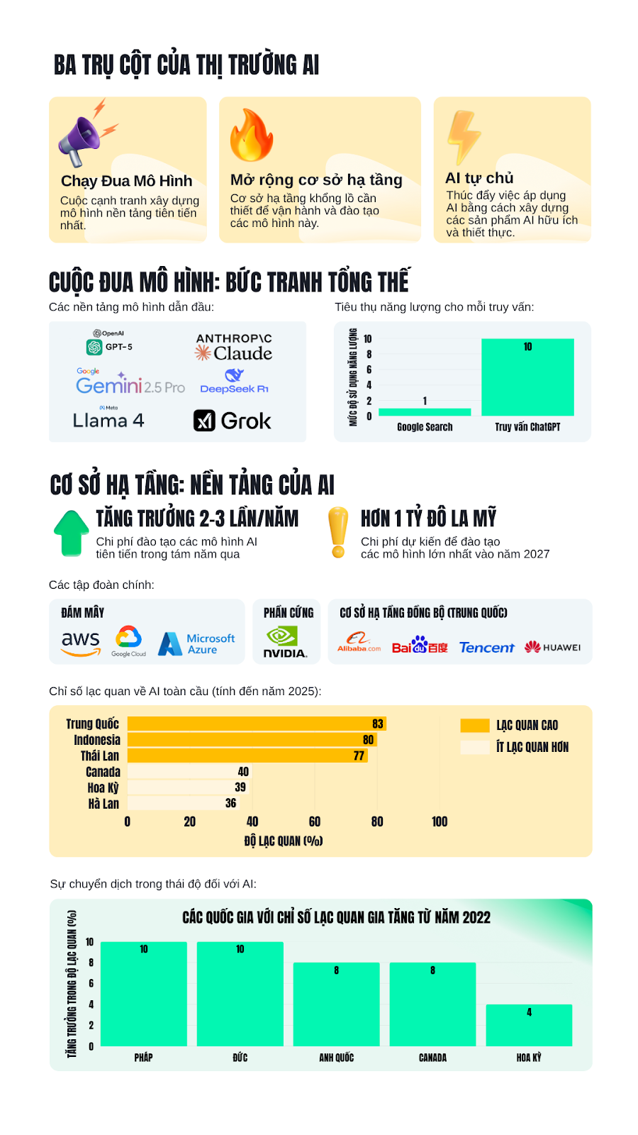 Sự phát triển của AI tự chủ tạo ra một cơ hội lớn cho các công ty công nghệ Việt Nam. Thay vì cạnh tranh trực tiếp trong cuộc đua mô hình nền tảng tốn kém, các doanh nghiệp trong nước đang tập trung vào việc tạo ra các giải pháp AI chuyên biệt, đáp ứng nhu cầu nội địa độc đáo. Cách tiếp cận này phù hợp với một báo cáo gần đây xếp hạng Việt Nam ở vị trí thứ sáu trong Chỉ số AI Toàn cầu năm 2025, nhấn mạnh sự lạc quan và sẵn sàng cao của người tiêu dùng đối với việc áp dụng AI. Các tập đoàn hàng đầu Việt Nam đã đạt được những bước tiến đáng kể trong lĩnh vực này với các sản phẩm “Made in Vietnam”, trong khi chính phủ đang tích cực thúc đẩy hệ sinh thái này thông qua nhiều sáng kiến cung cấp các ưu đãi tài chính cho hoạt động nghiên cứu và phát triển AI. Trọng tâm chiến lược này vào các giải pháp thực tiễn, được bản địa hóa sẽ đưa Việt Nam trở thành thị trường tiên phong trong việc ứng dụng AI độc lập, mang lại giá trị hữu hình cho cộng đồng và thúc đẩy tăng trưởng kinh tế số.
