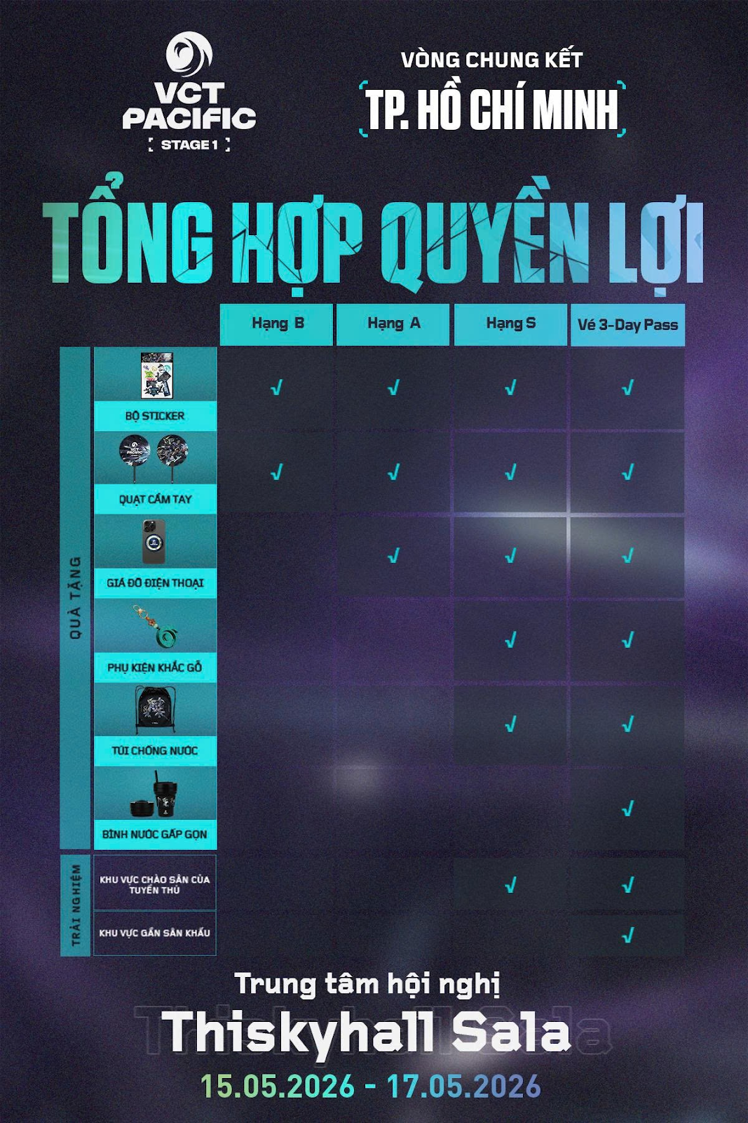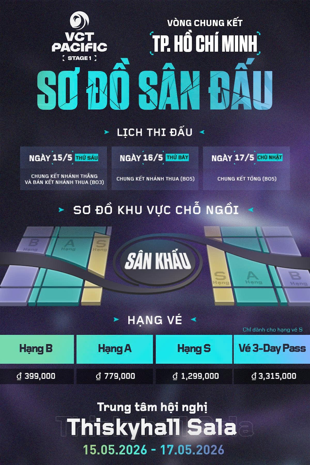 Sau những màn “vẩy tâm” nghẹt thở từ vòng Kickoff đến Stage 1, tâm điểm của VALORANT khu vực châu Á – Thái Bình Dương sẽ chính thức chuyển dịch về Việt Nam. Trung tâm Hội nghị Thiskyhall Sala (Quận 2, TP.HCM) đã được xác nhận là nơi đăng cai Vòng Chung Kết VCT 2026 Pacific Stage 1. Với không gian hiện đại và sức chứa tầm cỡ, đây hứa hẹn là nơi bùng nổ những cảm xúc thăng hoa nhất cho các fan FPS từ ngày 15/05 đến 17/05.
