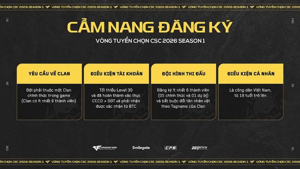 Vòng tuyển chọn CSC 2026 Season 1 chính là vạch xuất phát cho những huyền thoại mới. Nếu bạn có kỹ năng, có đồng đội và một trái tim rực cháy đam mê thì đừng ngần ngại ghi danh để viết nên câu chuyện của chính mình!